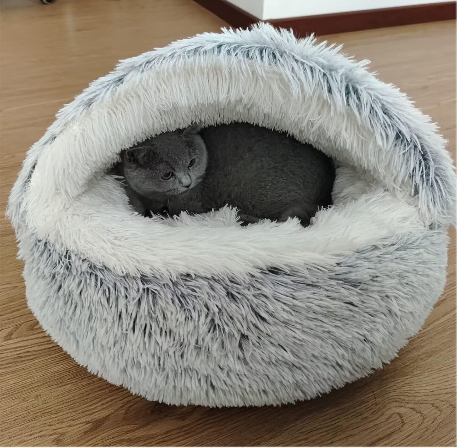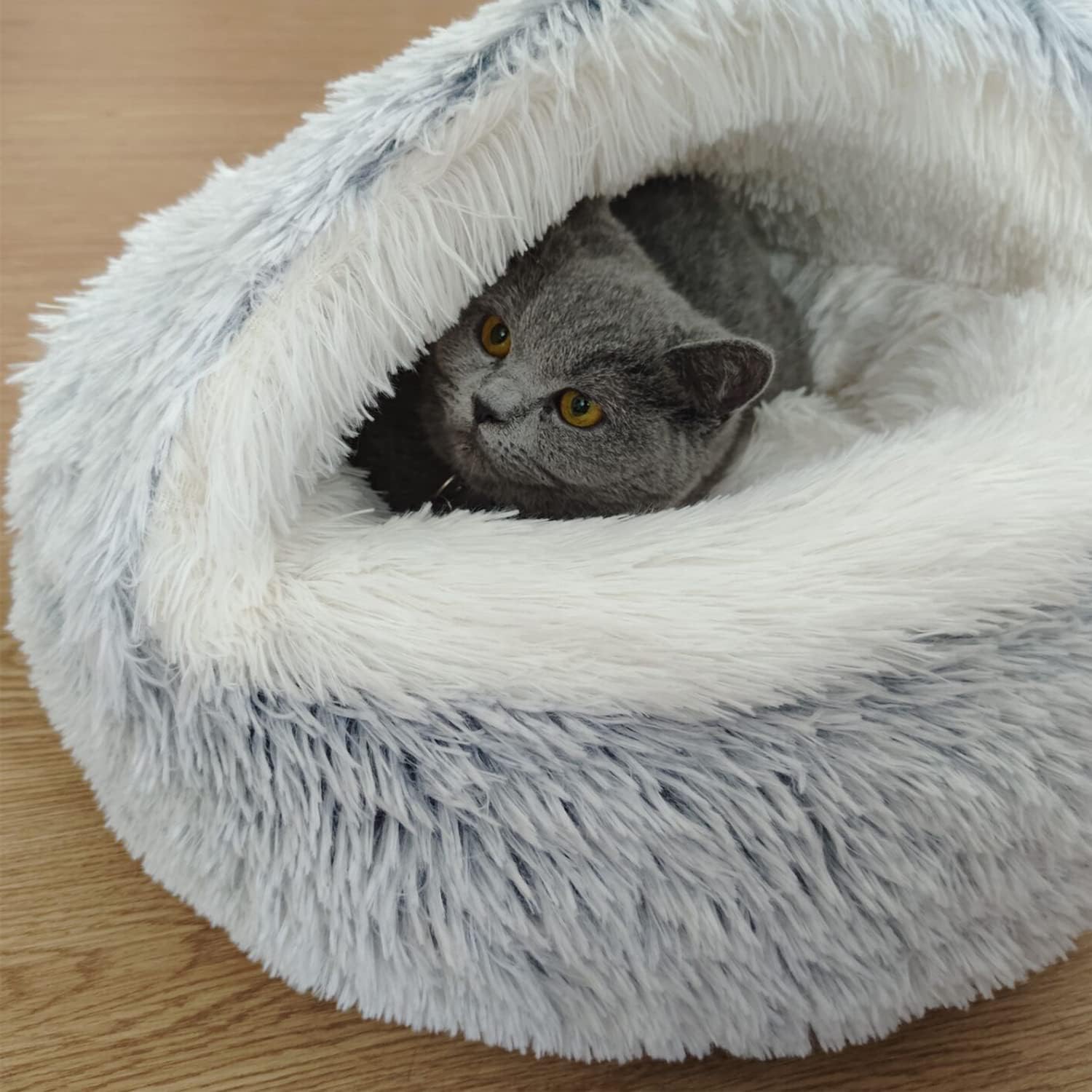 【2-in-1 small cat bed】The pet bed has a plush roof, which makes pets who like to nest in the corner feel more secure, and at the same time makes the house super warm in winter. The soft roof of the cat bed can lie on the donut cover in summer. Dozing off is also very comfortable.