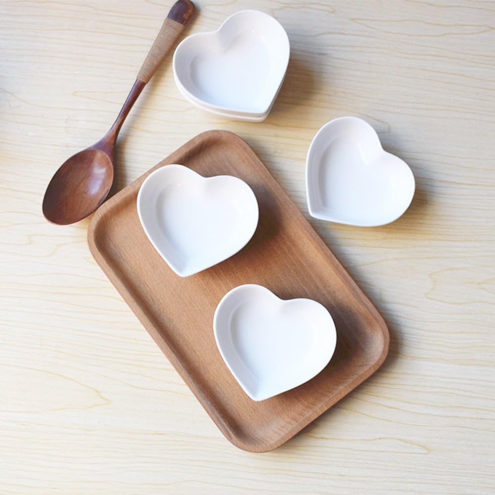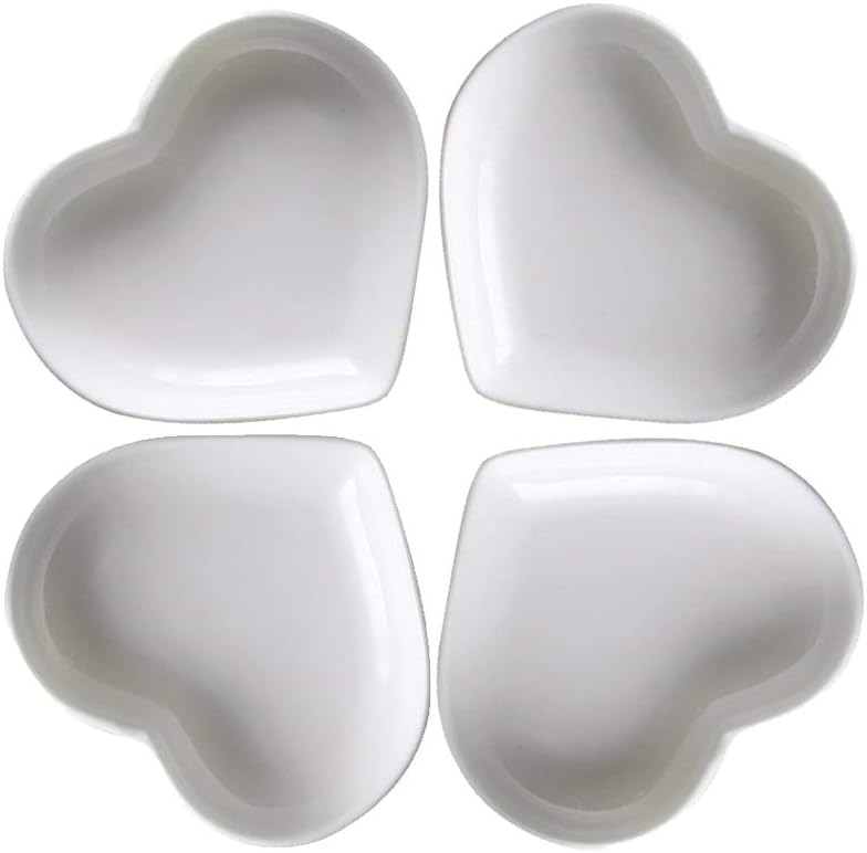 Super Cute heart sharpe Ceramic Sauce Dish,Mini Side Seasoning Dish,Condiment Dishes/Sushi Soy Dipping Bowl,Snack Serving Dishes,Love Porcelain Small Saucer Set(Set of 4) (8cm)