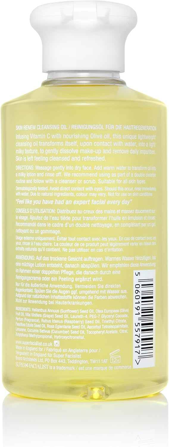 Super Facialist – Vitamin C + Brighten Skin Renew Cleansing Oil, Face Cleanser for Dissolving Makeup & Remove Daily Impurities, Contains Olive Oil, Vegan Friendly, 200ml