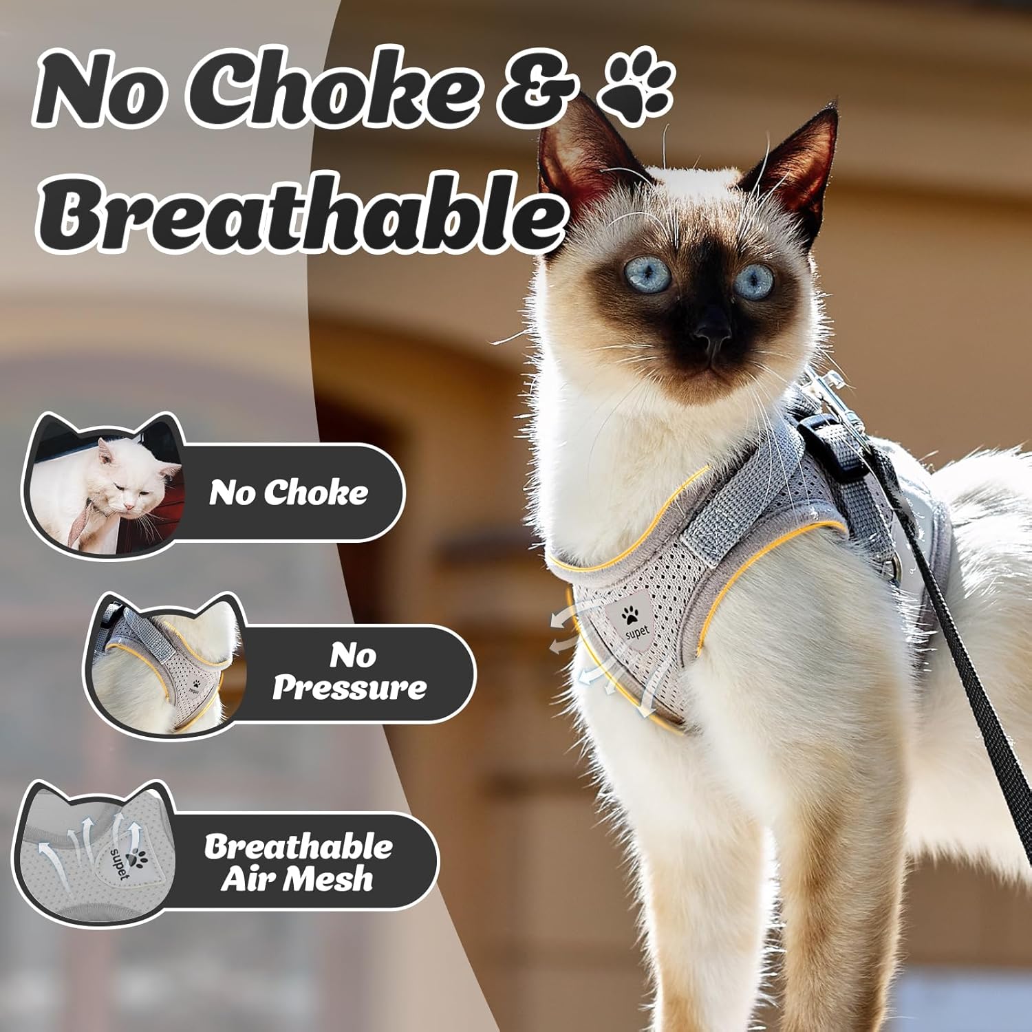 Supet Cat Harness and Leash Set for Walking Escape Proof with 2-in-1 Leash and Car Seat Belt Adjustable Harness for Cats Soft Mesh Cat Vest with Reflective Strap for Kitten Rabbit Puppy