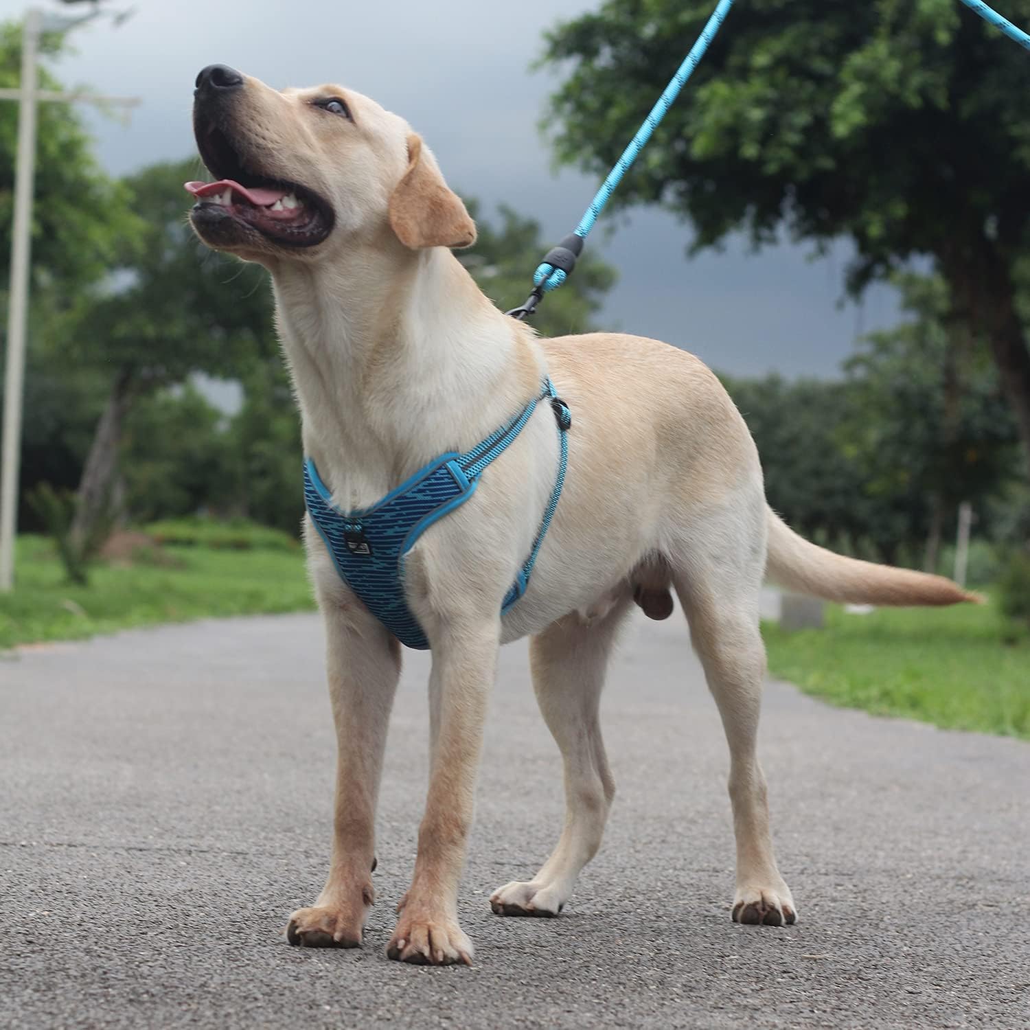Super Reflective stripes is designed to reflect ambient light under extreme low light conditions, it can provide maximum visibility when dogs walking at night.No pull design to distribute the pulling pressure evenly to the dog body to prevent pulling and choking.