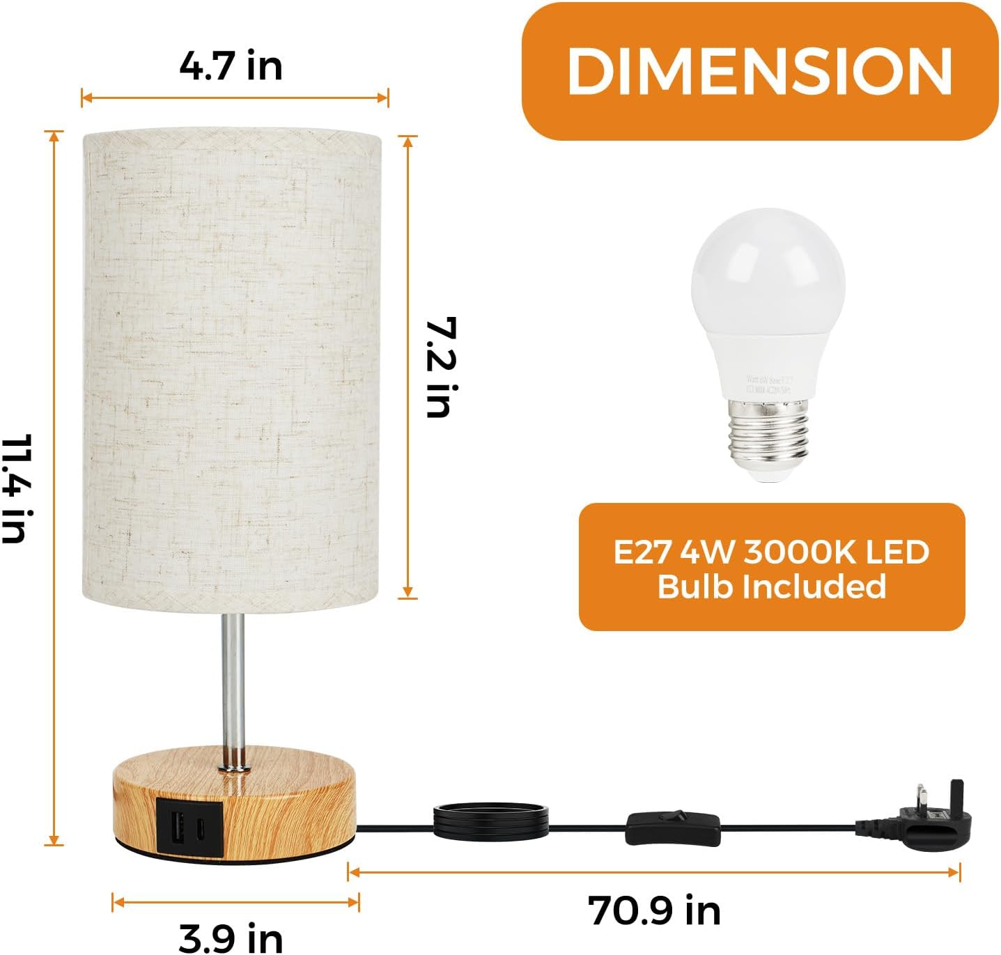 💡【Dimmable LED Bulb Included】The nightstand lamp comes with a free E27 4W 3000K dimmable LED bulb. No flicker, no glare, friendly to eyes, energy saving. The lifespan is 30 times that of ordinary bulbs. Perfect for sleeping, reading or working.