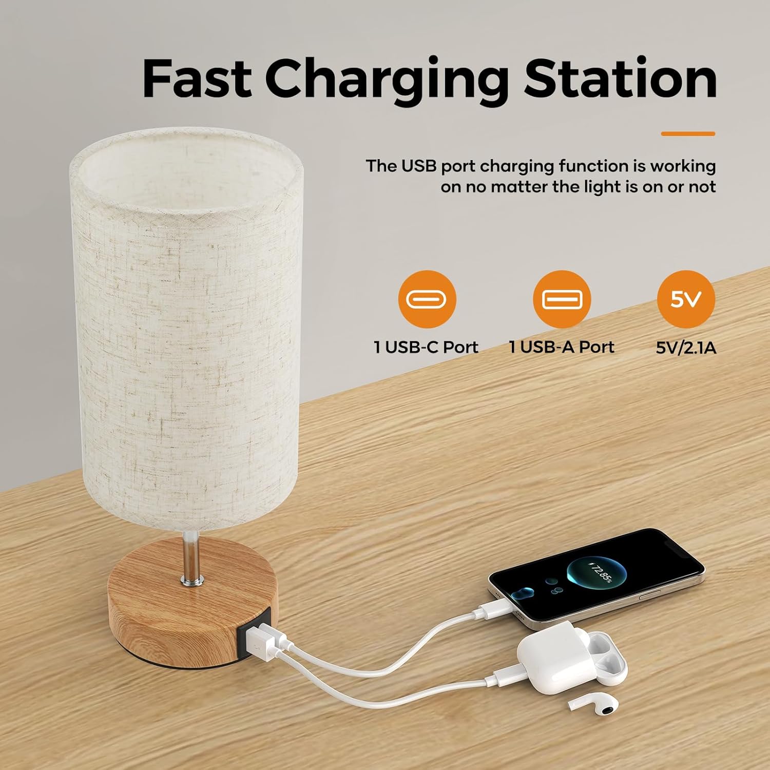 💡【High Quality Lampshade and Base】The well-made linen lampshade can soften the light, protect your eyes and create a relaxing and comfortable atmosphere. Equipped with fast charging USB ports, the wooden base is beautiful and functional.