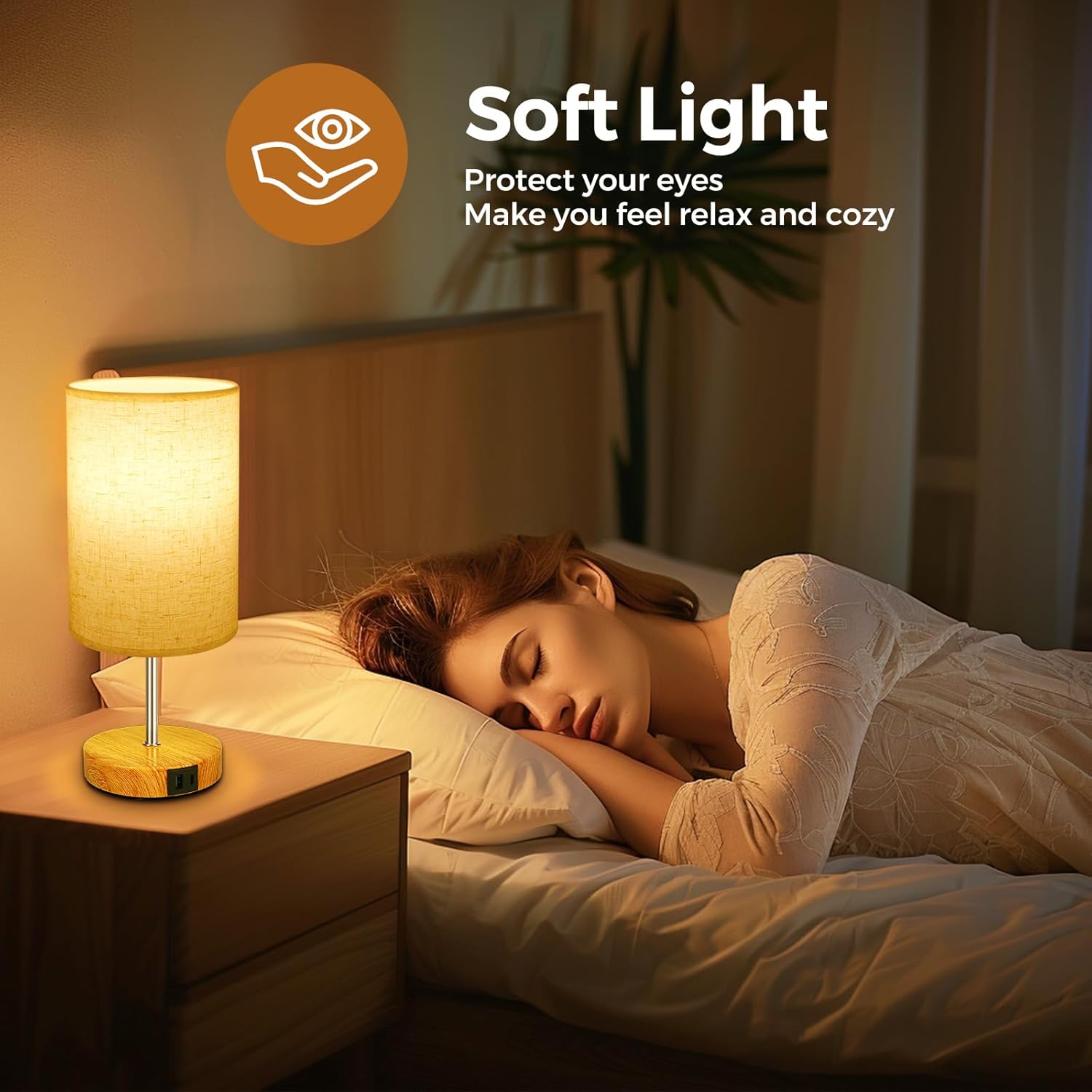 💡【Modern and Elegant Design】Composed of fabric shade, metal lamp pole and wooden base, touch lamps look very modern and elegant. Besides lighting, it’s also perfect for home decor. Mini size design: 4.7″(W) x 11.4″(H). Don’t take up much space.