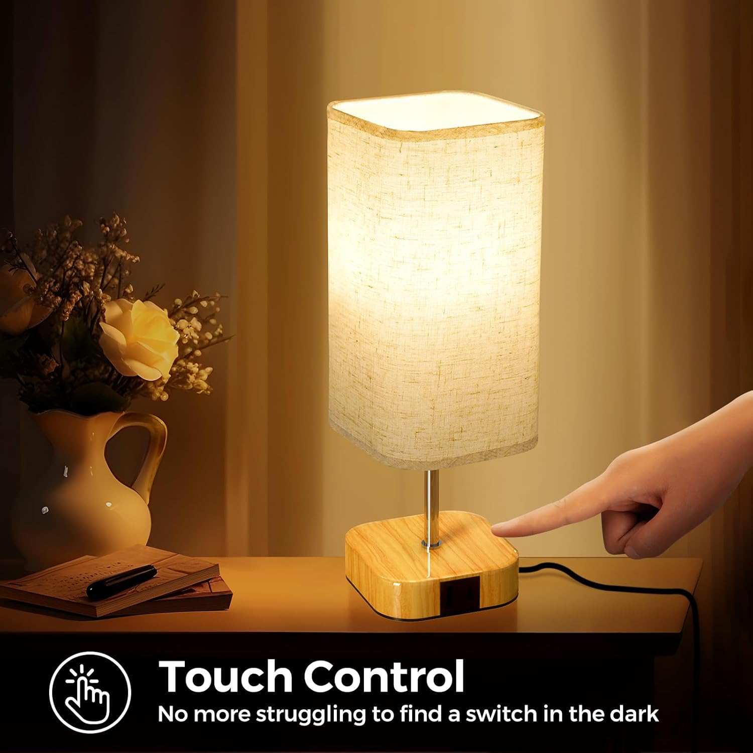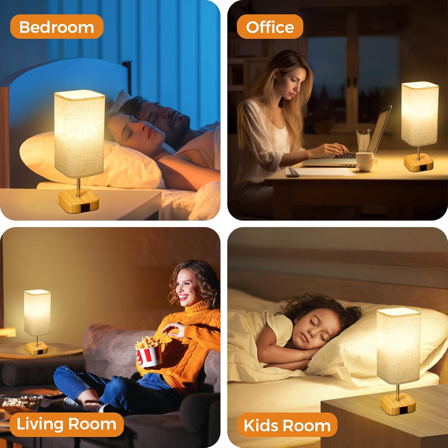 💡【Modern & Elegant Design】Composed of fabric shade, metal lamp pole and wooden base, touch lamp looks very modern and elegant. Besides lighting, it’s also perfect for home decor. Perfect size design: 4.4″(W) x 12.6″(H). Don’t take up much space.