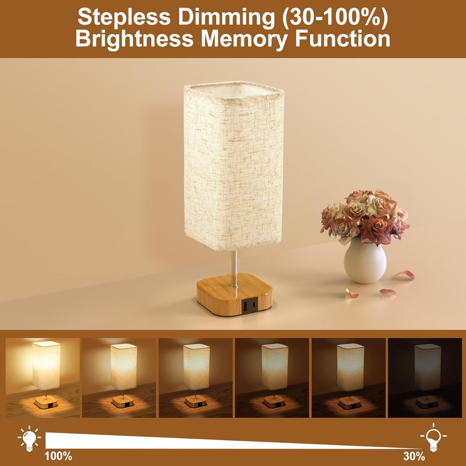 💡【Stepless Dimming & Memory Function】Compared to 3-way dimming lamp, our bedside lamp has more brightness settings. Just long press the base to switch the brightness between 30%-100%. When you turn it on again, it will stay at the last used brightness.