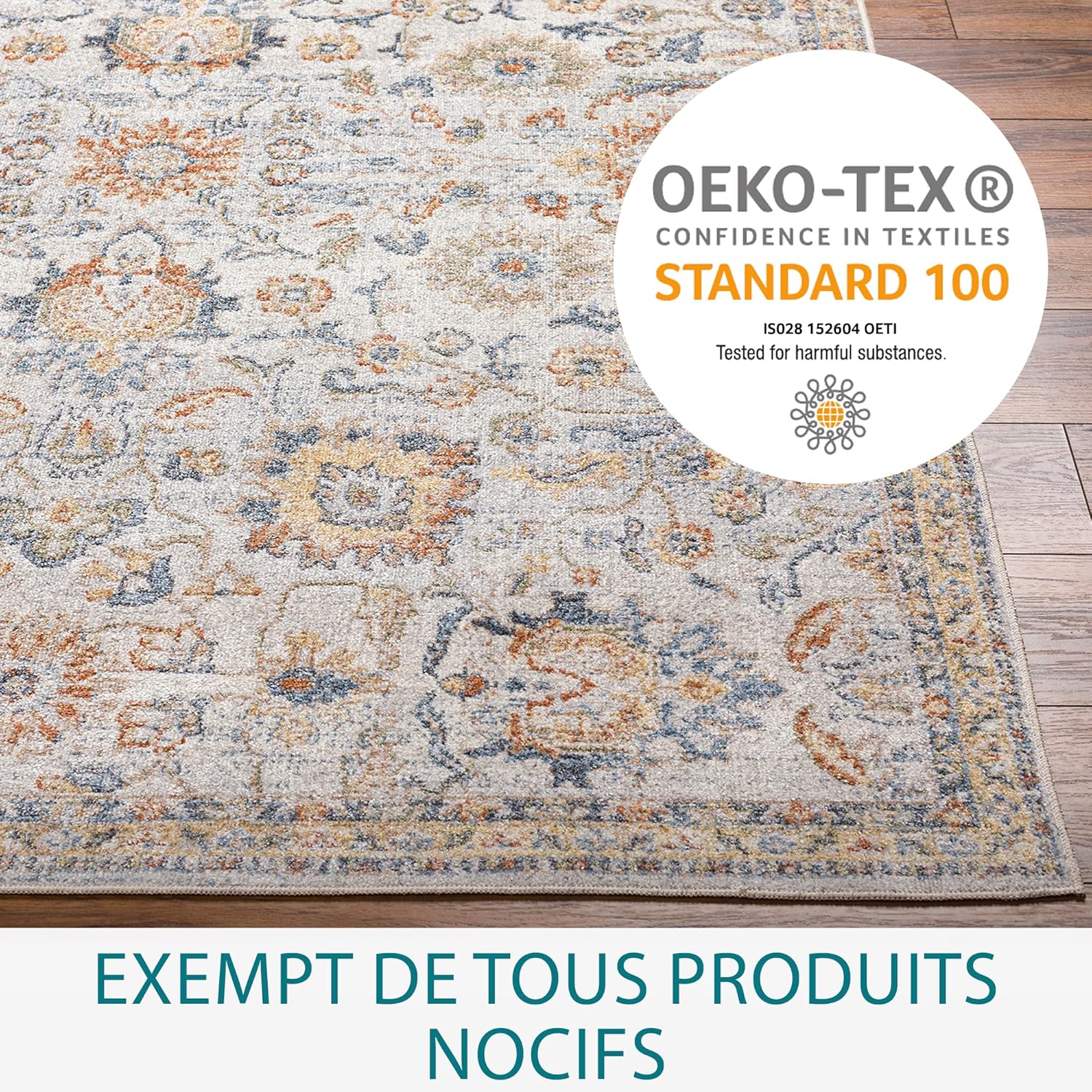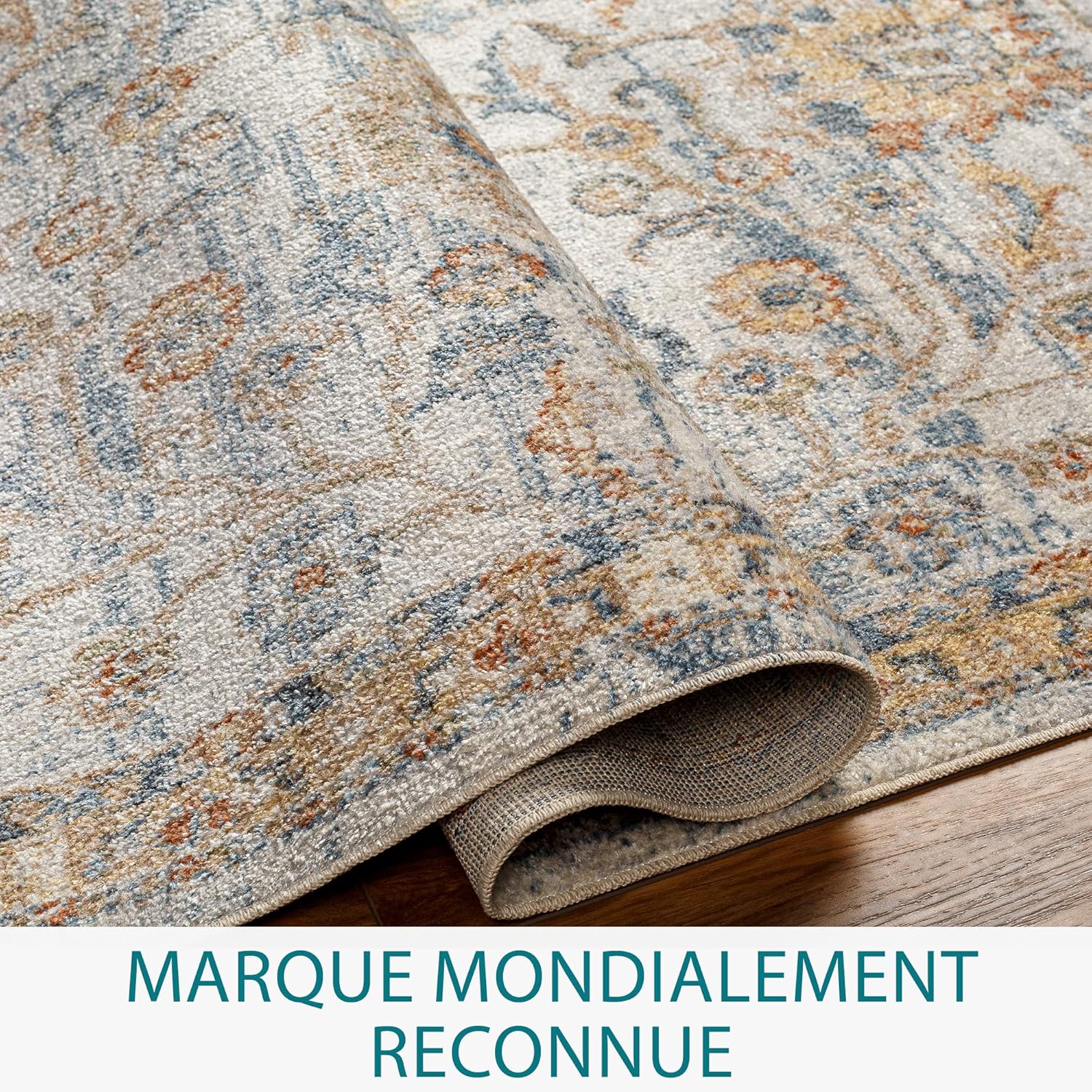 Strong and durable vintage area rugs, in a range of small, medium, large, round rugs and runner rug sizes, machine woven in 100% polyester, a washable rug designed for maximum durability, with no pile; durable, moisture, bleach and stain resistant