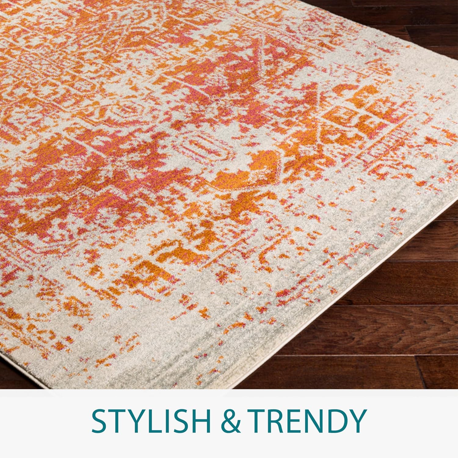 Surya Syracusa Vintage Rug – Area Rugs Living Room, Hallway Floor, Kitchen, Traditional Multicoloured Boho Rug, Easy Care Pile, Bohemian Large Rug 160×220 cm Burnt Orange, Beige and Pink Rug
