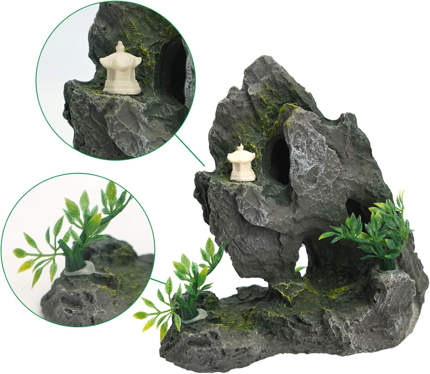 The color is close to the true stone color, and decorated with moss, pavilions, and trees, adding natural colors to your aquarium