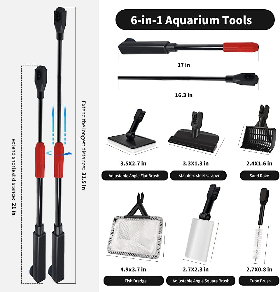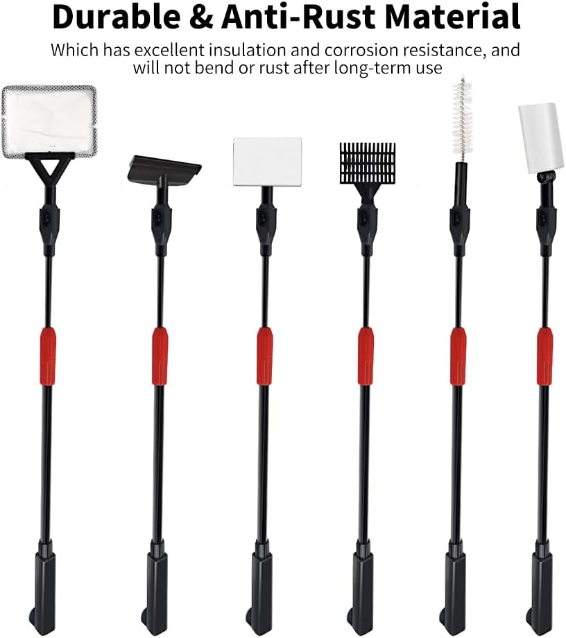 Durable & Anti-Rust Material: The 6 in 1 fish tank cleaning kit is made of high-quality and durable ABS plastic material, which has excellent insulation and corrosion resistance. Will not easily bend or rust after using a long time