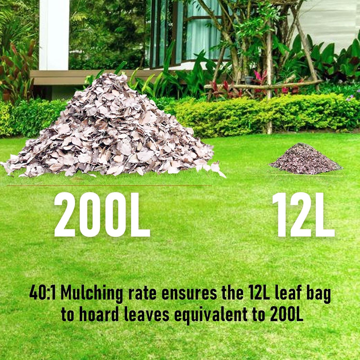 High Performance Mulching Rate: 40:1 Mulching rate ensures the 12L clipped leaf bag to hoard leaves equivalent to 200L. Effectively make you spend less time to empty the bag and save more time to clean your garden