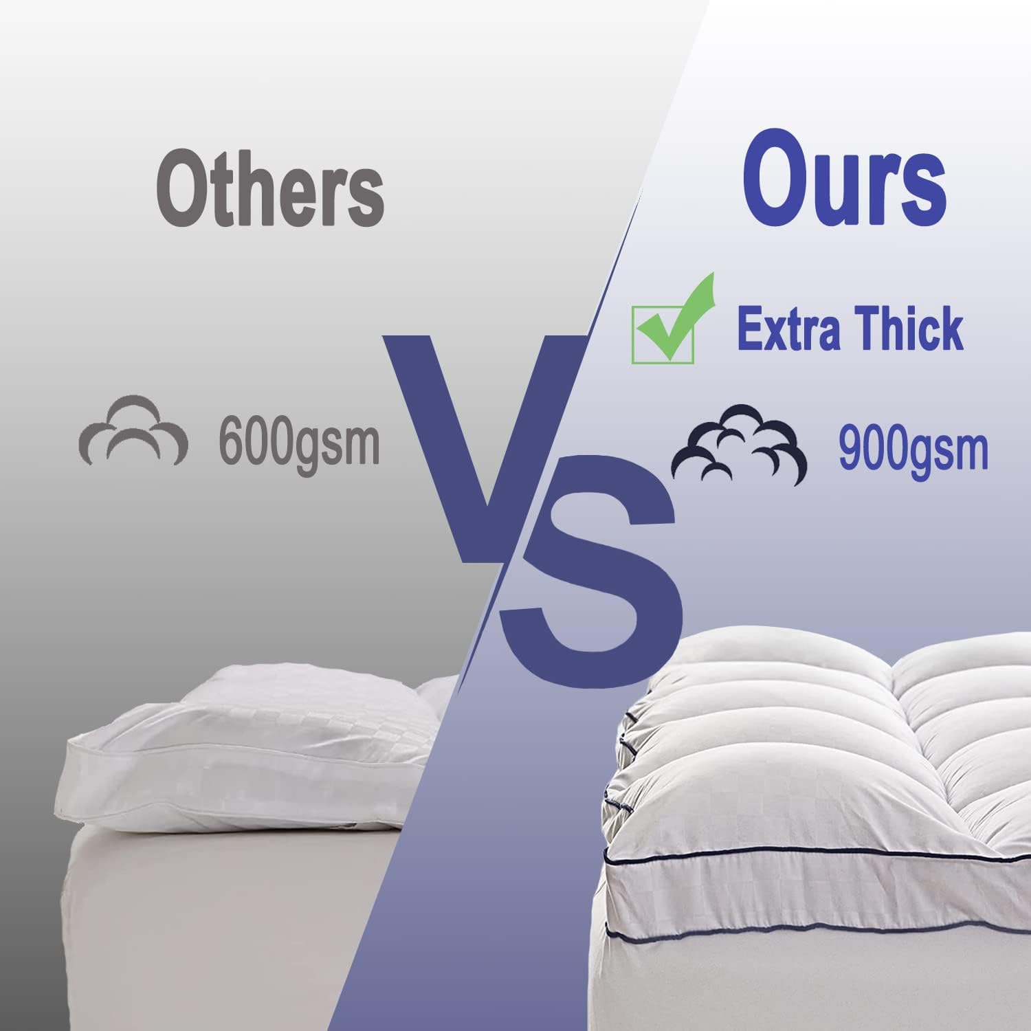 Extra Thick & Comfortable: Our mattress topper is filled with 900gsm of premium microfiber, the bed cushions for mattress is supportive, offering pressure-relief properties that provide greater support for your hips, shoulders, back, and knees. And the polyester increases mattress topper’s air permeability, so this cooling pillow top mattress will improve your sleep quality and let you hava a good night.