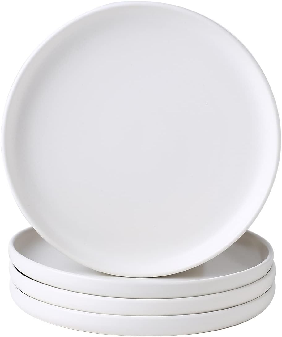 Swuut Matte Ceramic Appetizer Plates 15cm,Set of 4, Holiday Snack Bread Butter Mini Side Plate Set,Dishwasher Microwave & Oven Safe (6 inch, White)
