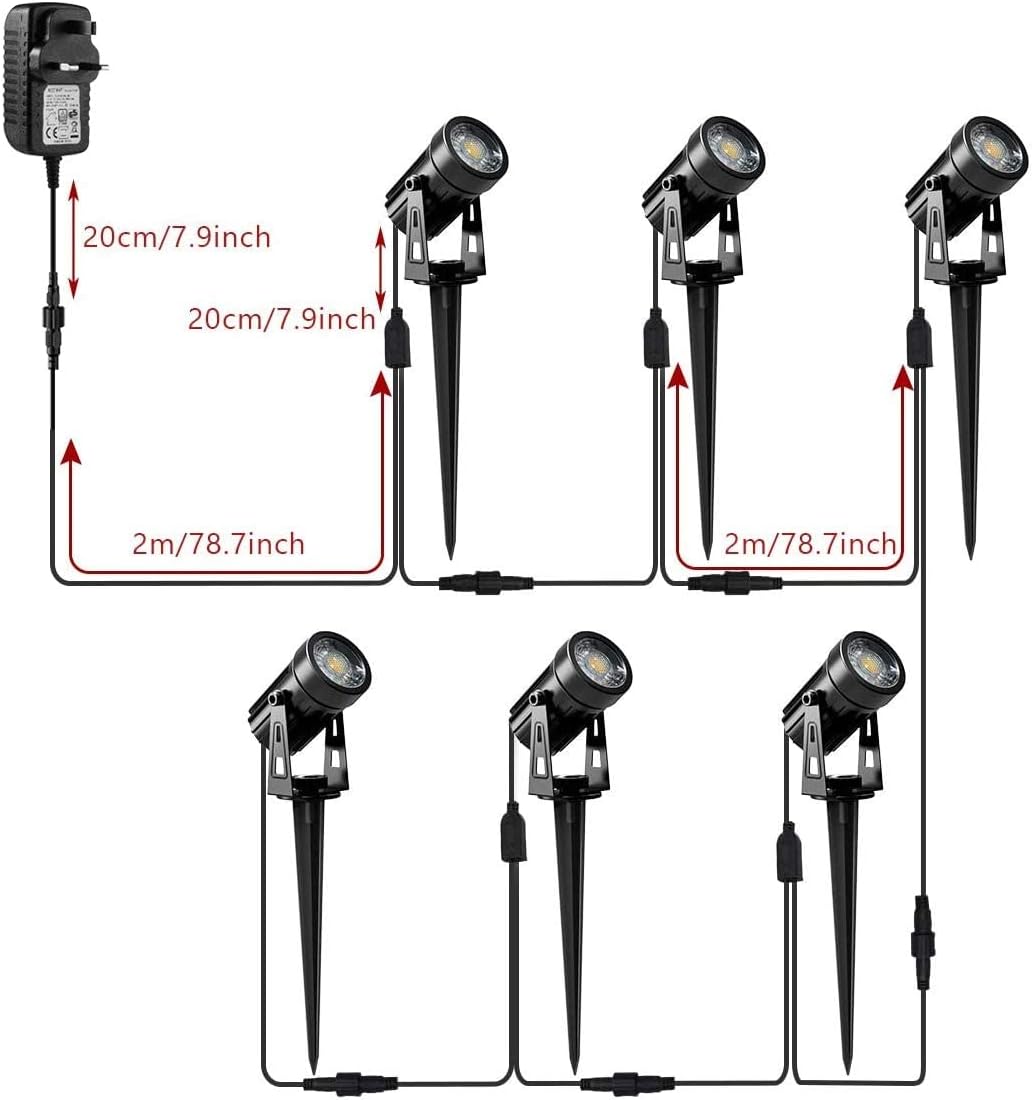 【Safe Outdoor Spotlights with Plug】12V safe working voltage, UK adapter included, no risk of overheating or burning. Compared with complicated wiring method, these low voltage landscape lights with plug, won’t waste your money and time to hire an electrician to install, you can easily finish the project within several minutes.