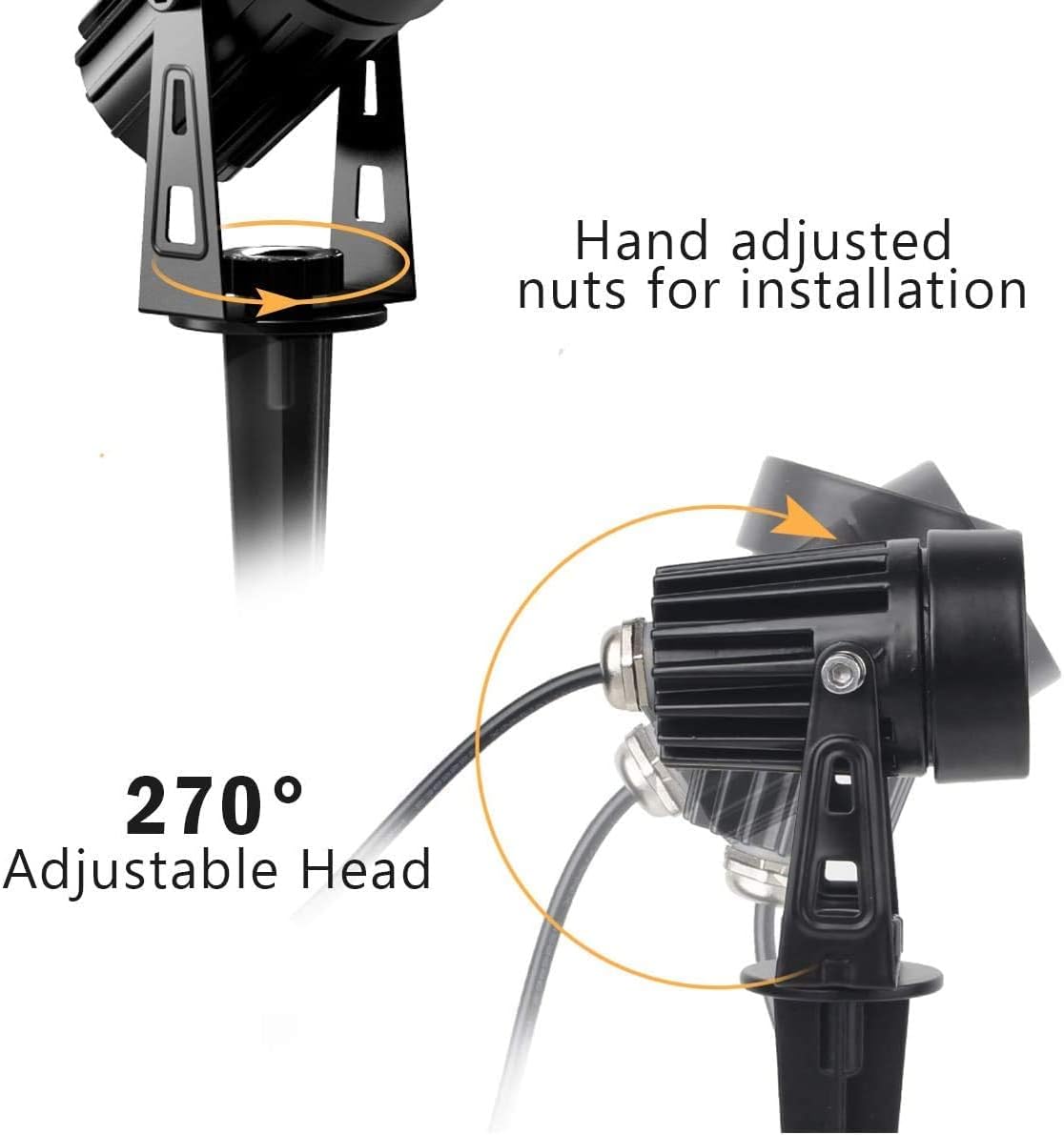 【Rotatable & Flexible Angle Adjustment】The garden led spot lights with 270 degree adjustable tilting head so you can point them in any direction. Perfect for walls, trees, bushes, trunk, flags,fences.