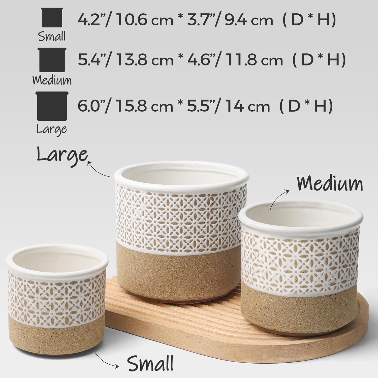 T4U Ceramic Planter Pots Set of 3, Large Round Flower Pot with Drainage Holes, Succulent Cactus Pots for Indoor Outdoor Plants, Home and Office Decoration Desktop Windowsill Gift for Gardener
