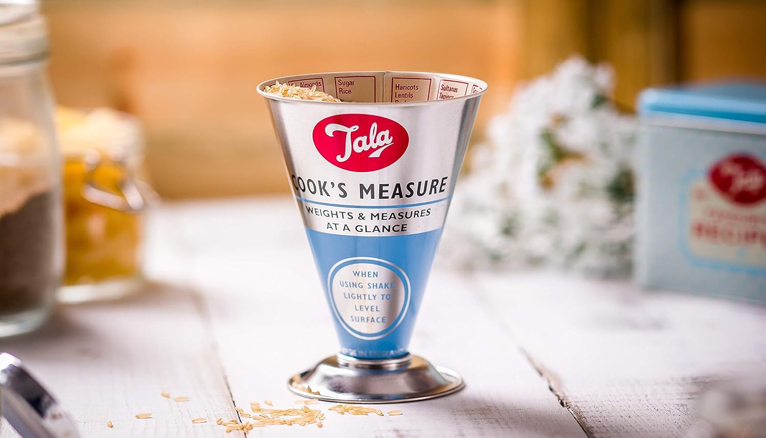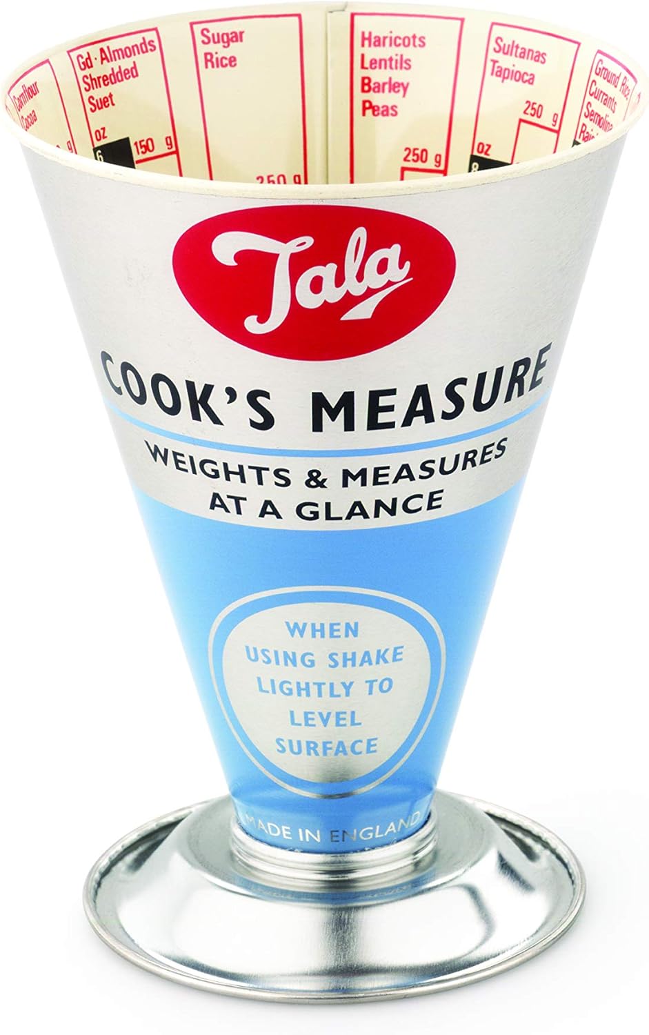 The Iconic Tala Cook’s Measure has been hand-made in Liverpool since the 1930’s. This clever little tool provides an amazingly quick and easy way of measuring ingredients – without the need of getting out the scales.