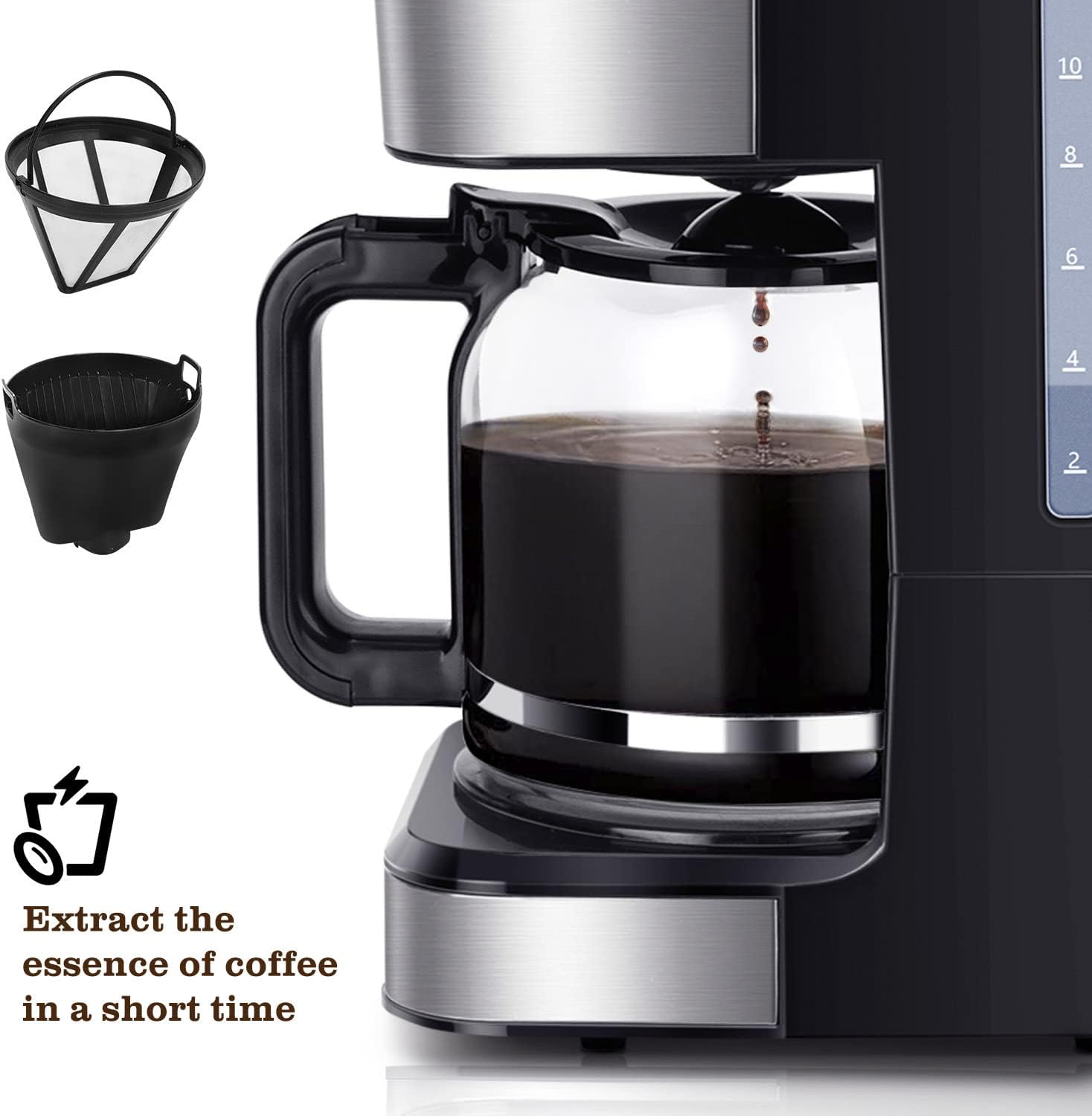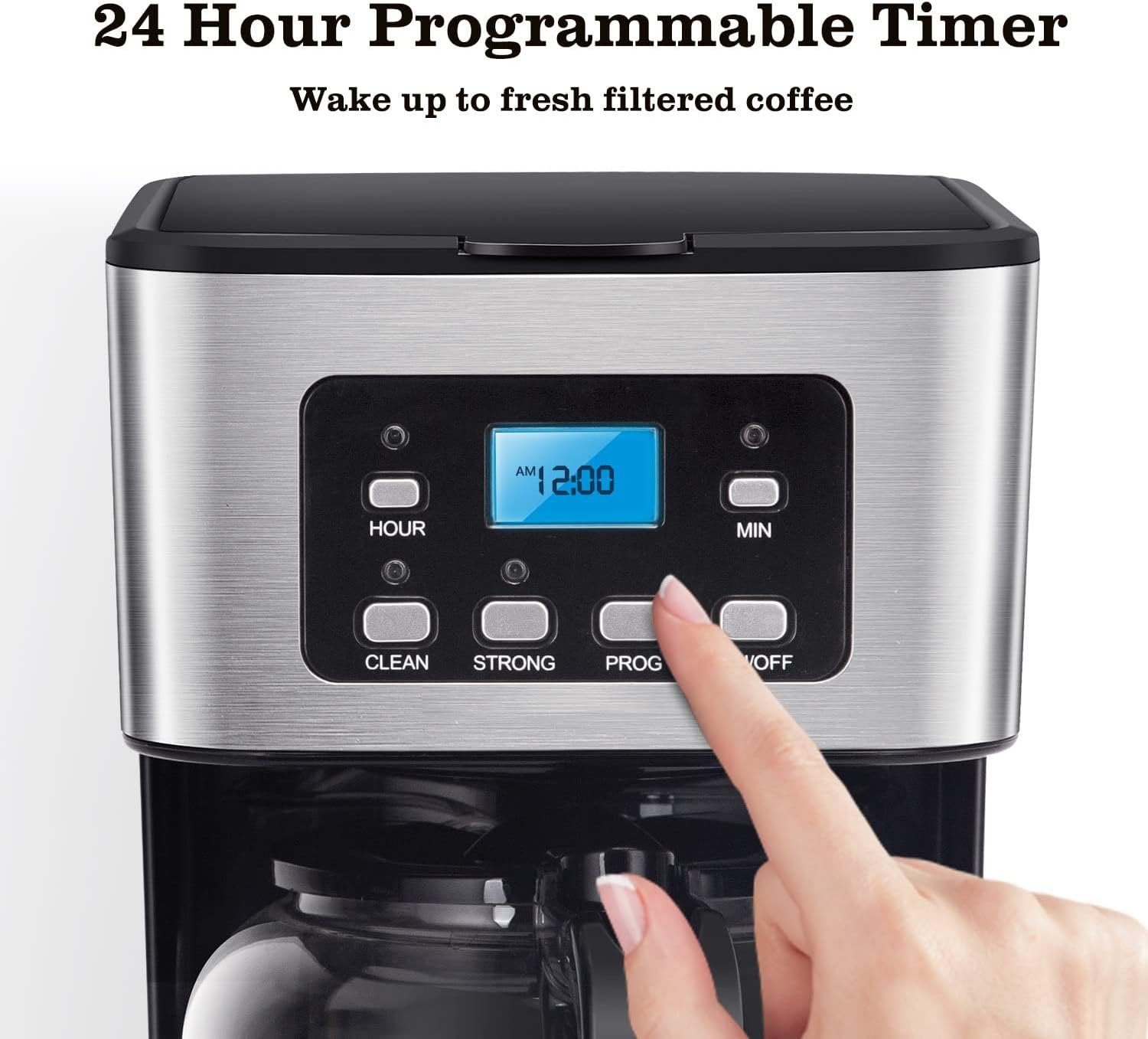 【Wake Up To Fresh Filtered Coffee】 With the 24 hour digital programmable timer of the filter coffee maker, you can drink fresh coffee every morning or whenever you want. All you need to do is fill the water tank, put the ground coffee into the filter and program the desired time for the coffee.