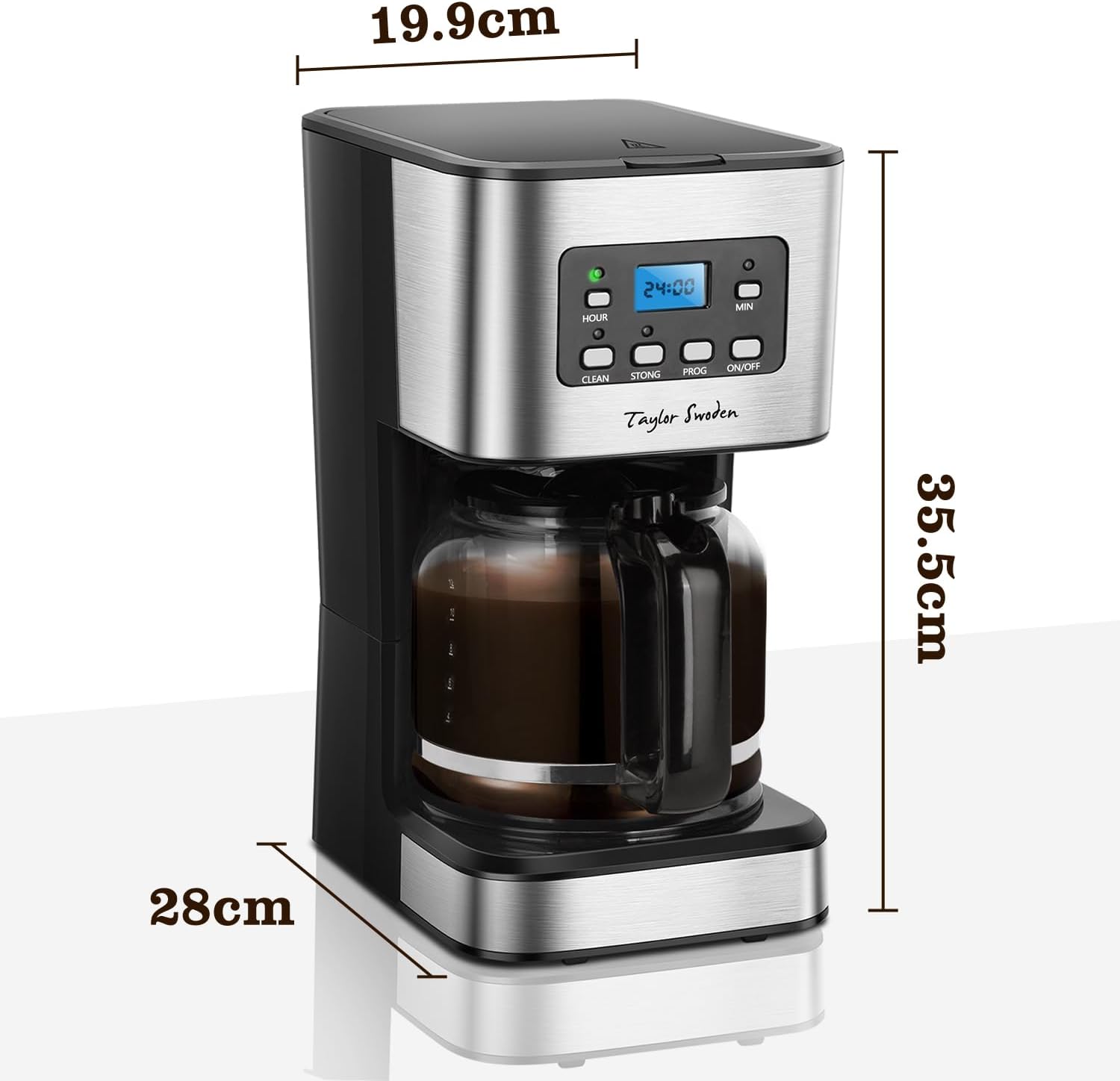Taylor Swoden Filter Coffee Machine, Drip Coffee Maker with Programmable 24hr Timer, Keep Warm & Anti-Drip, Reusable Filter Fast Brewing – Darcy 950W 1.5 L Black Stainless Steel