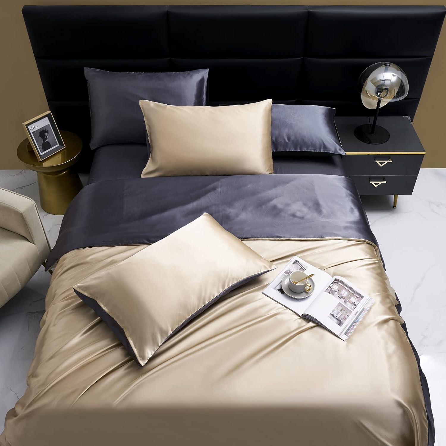 The silky satin duvet cover set will treat every strand of your hair gentlemanly.