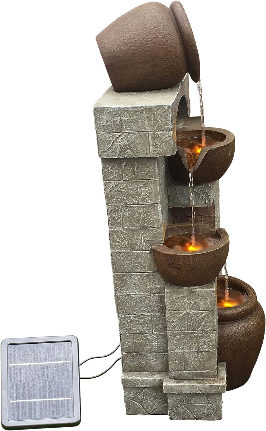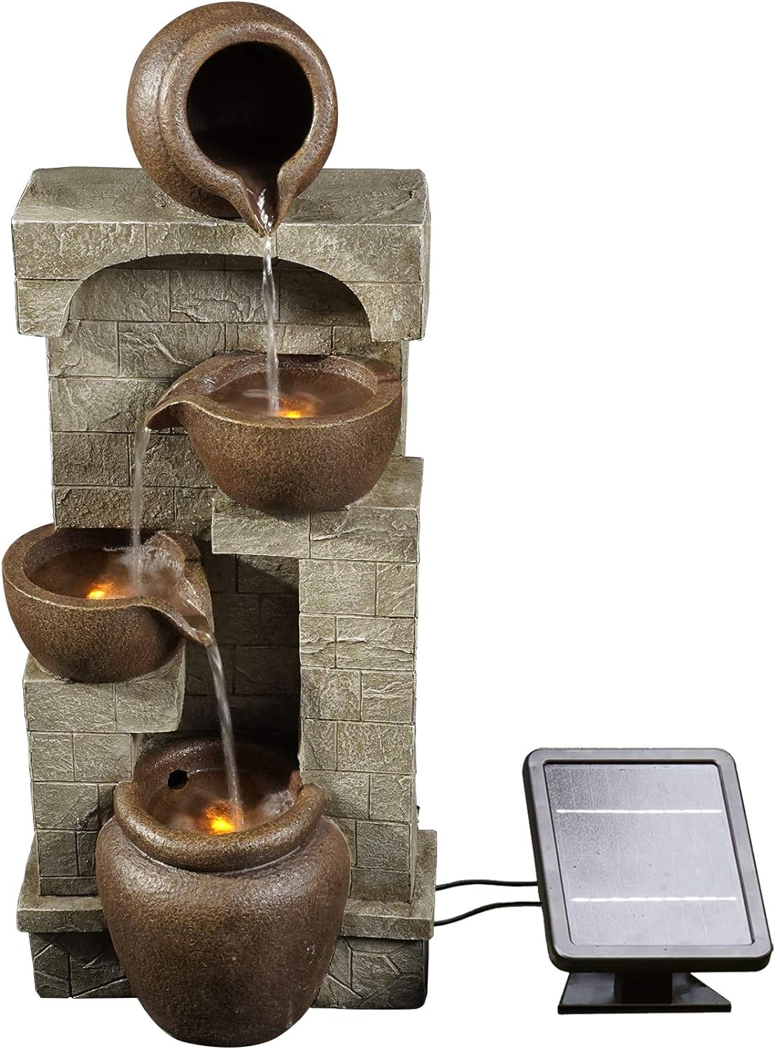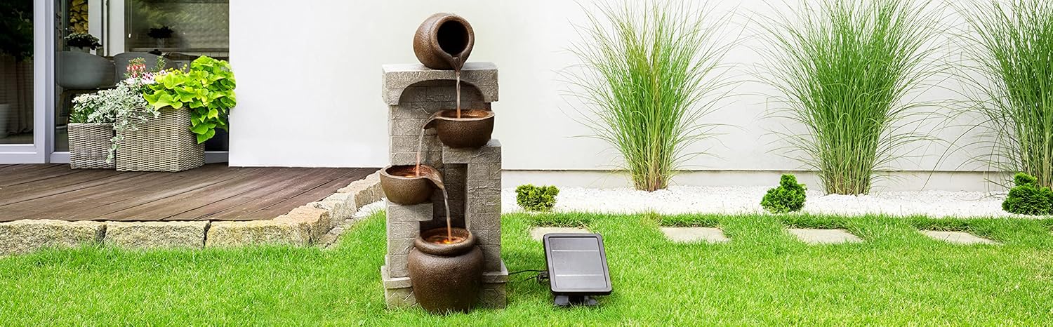 Teamson Home Solar Powered Water Feature, Indoor or Outdoor Garden Water Fountain, 4 Tier Pot, Waterfall with Solar Powered Pump and LED Lights