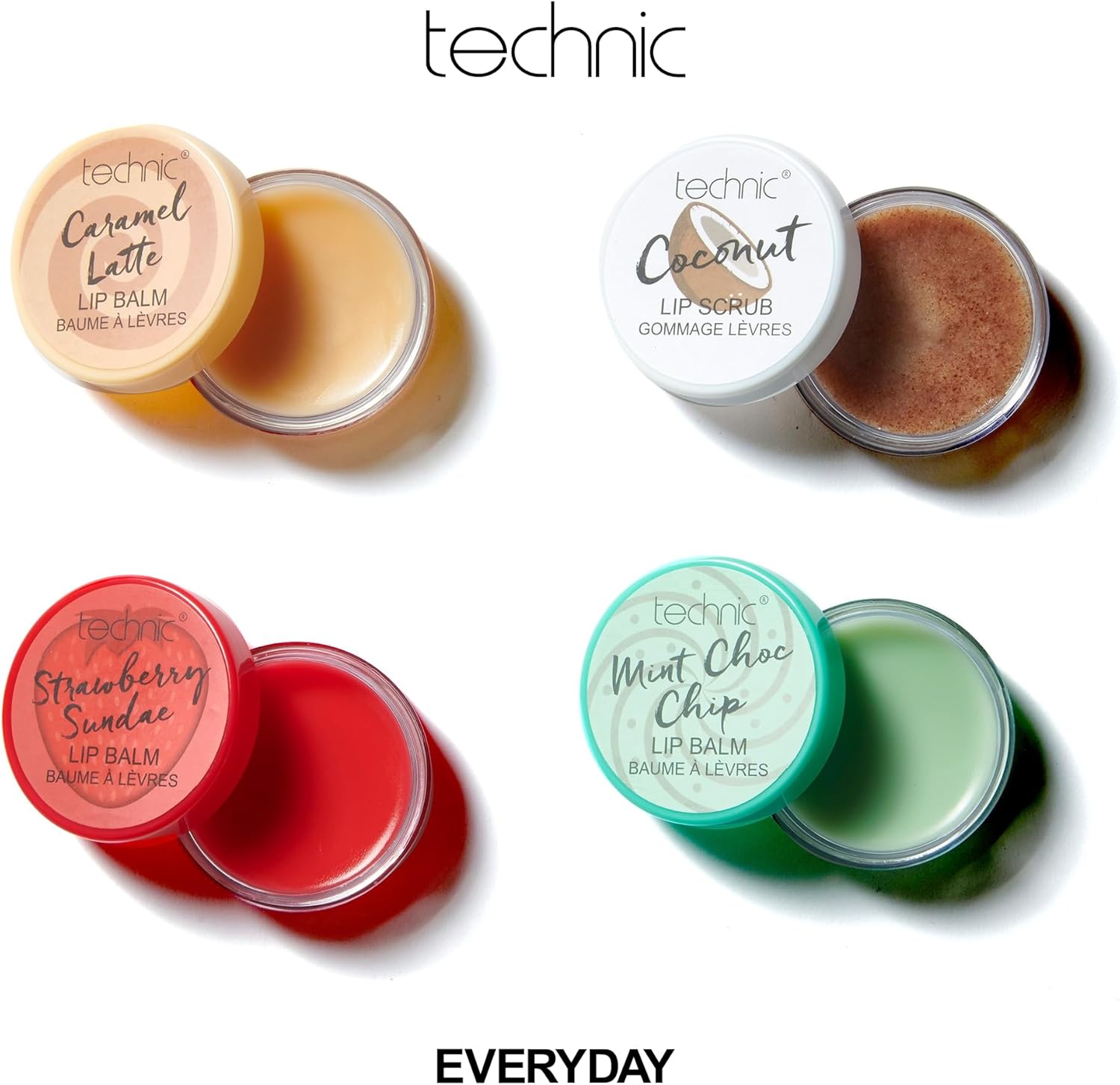 Technic Lip Balm & Scrub 4Pc Gift Set – 4 Flavours – Nourishing Coconut Sugar Scrub Lip Treatment & Softening Lip Balms – Vegan and Cruelty Free