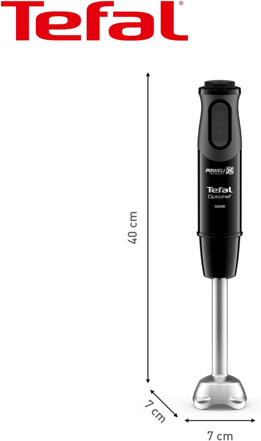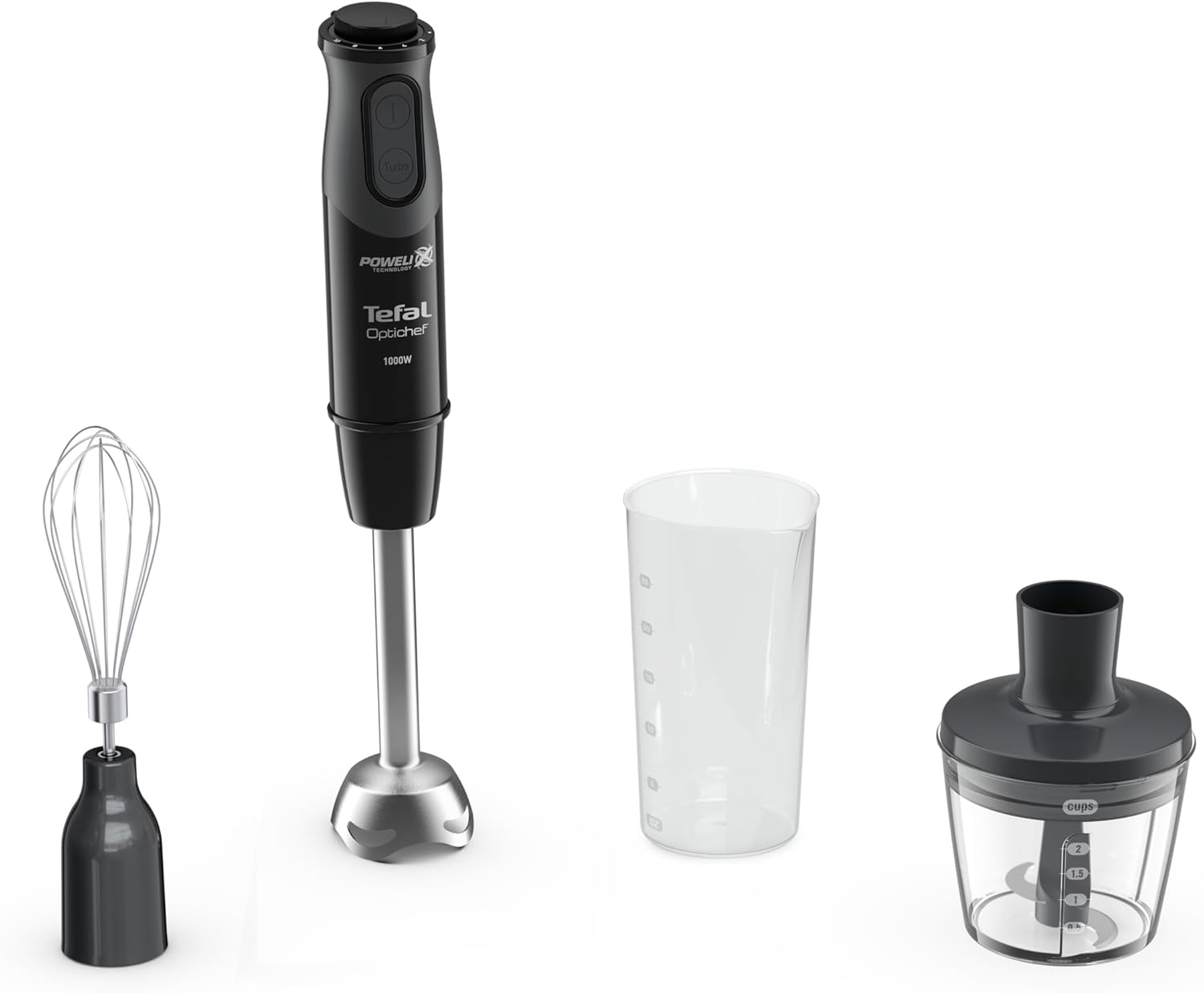 Tefal Optichef Hand Blender, 20 speeds adjustable and pulse, Powelix Blades Technology, 800ml beaker, 1000 W Motor, 500 ml Chopper, Dishwasher Safe Parts HB643842
