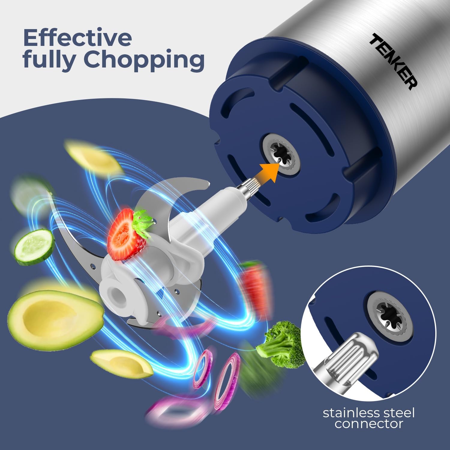 TENKER Food Processor can chop, grind, and puree easily for meat, fish, vegetable, nuts, fruit. It can make sauces, salads, and help you make baby & pet & family food!