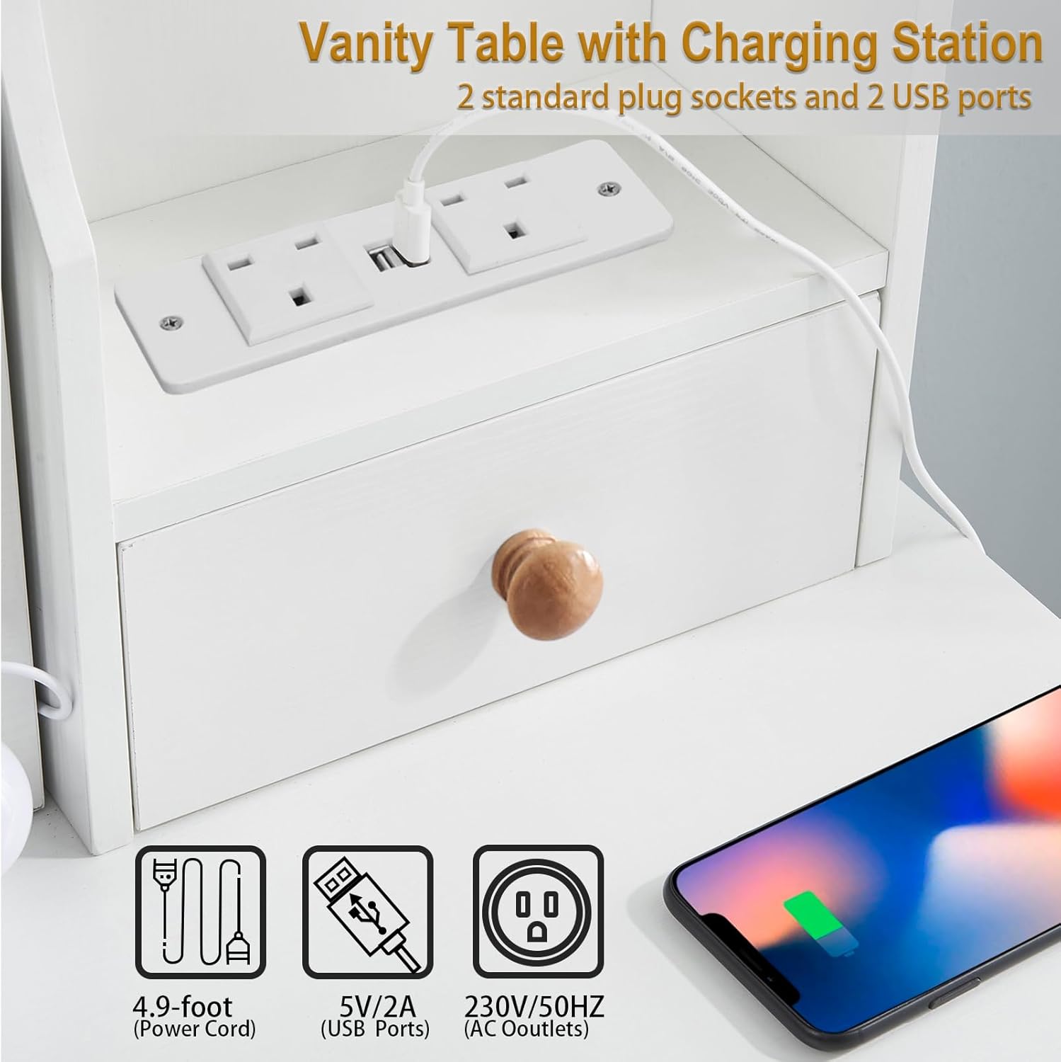 🎉【Make Up Vanity With Power Outlet】This Vanity Desk Provide 2 Standard Plug Sockets (UK) And 2 USB Ports, Let You Easily Charge Hair Dryer, Curling Iron, Phone Or Other Mobile Devices During Makeup Time