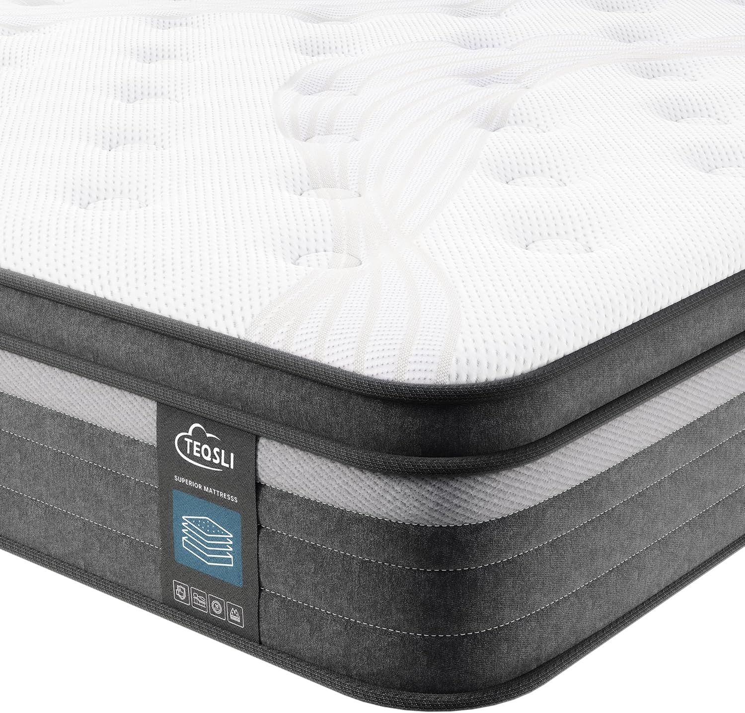 💤【𝗣𝗿𝗲𝘀𝘀𝘂𝗿𝗲 𝗥𝗲𝗹𝗶𝗲𝗳 & 𝗠𝗼𝘁𝗶𝗼𝗻 𝗜𝘀𝗼𝗹𝗮𝘁𝗶𝗼𝗻】TeQsli 3ft single mattress is made of gel memory foam that conforms to the body’s curves, effectively relieving fatigue and pressure. Besides, the gel-infused particles make the sleeping environment cooler. Individually wrapped inner springs support all parts of the body, protecting you from spinal pain. It is good at reducing motion interference, and you will feel less disturbed by your partner who changes position at night.