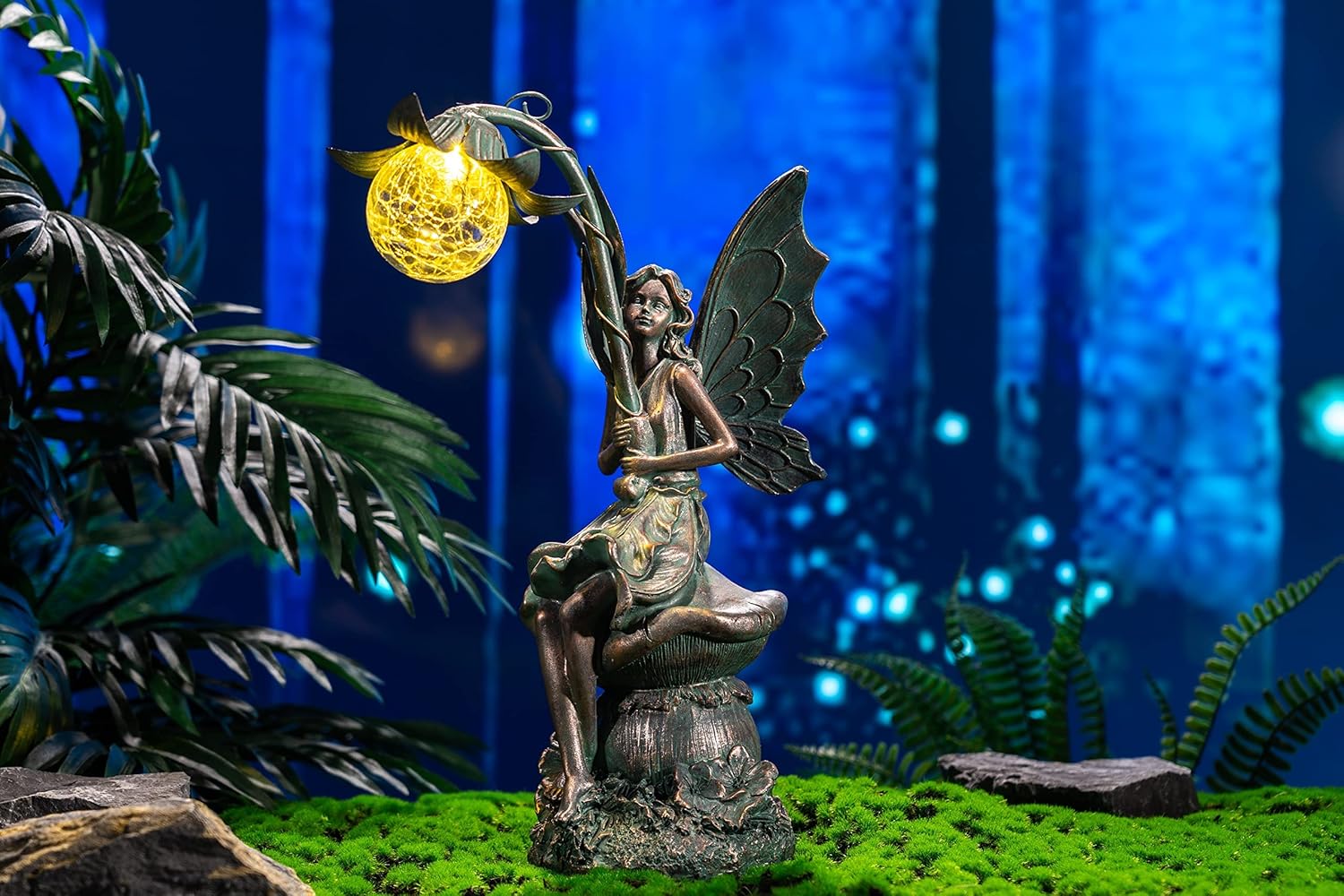 【Bronze effect】This fairy sculpture has a unique bronze color that will make your garden stand out!