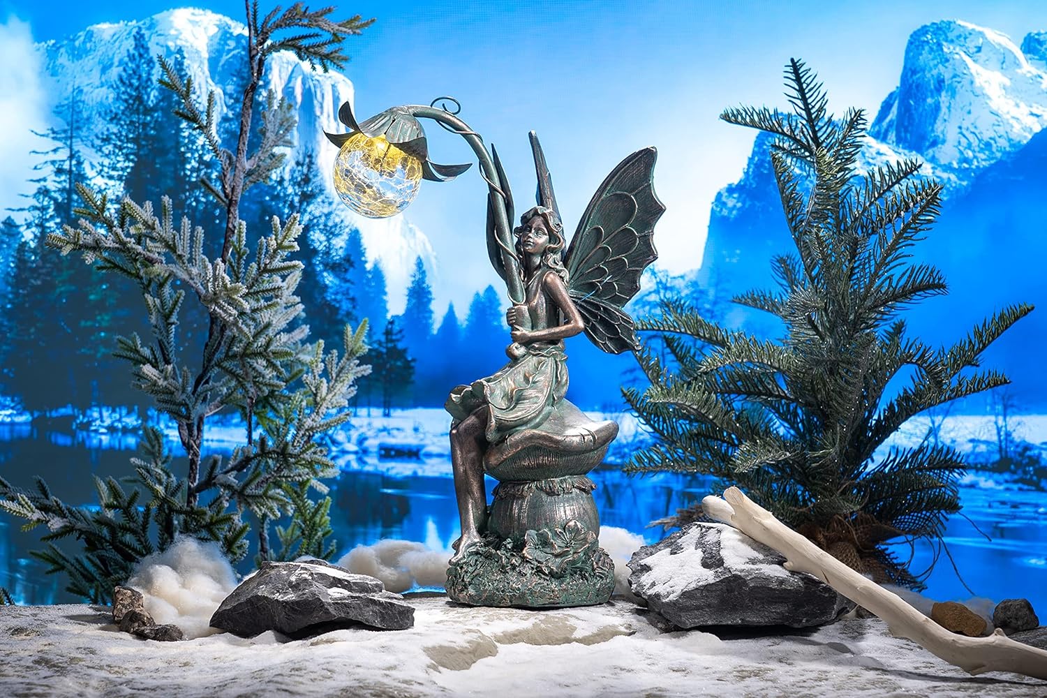 TERESA’S COLLECTIONS Garden Ornaments Outdoor for Garden Gifts, Bronze Fairy Garden Statues with Solar Lights, Resin Angel for Garden Decor Patio Lawn Yard, 35CM
