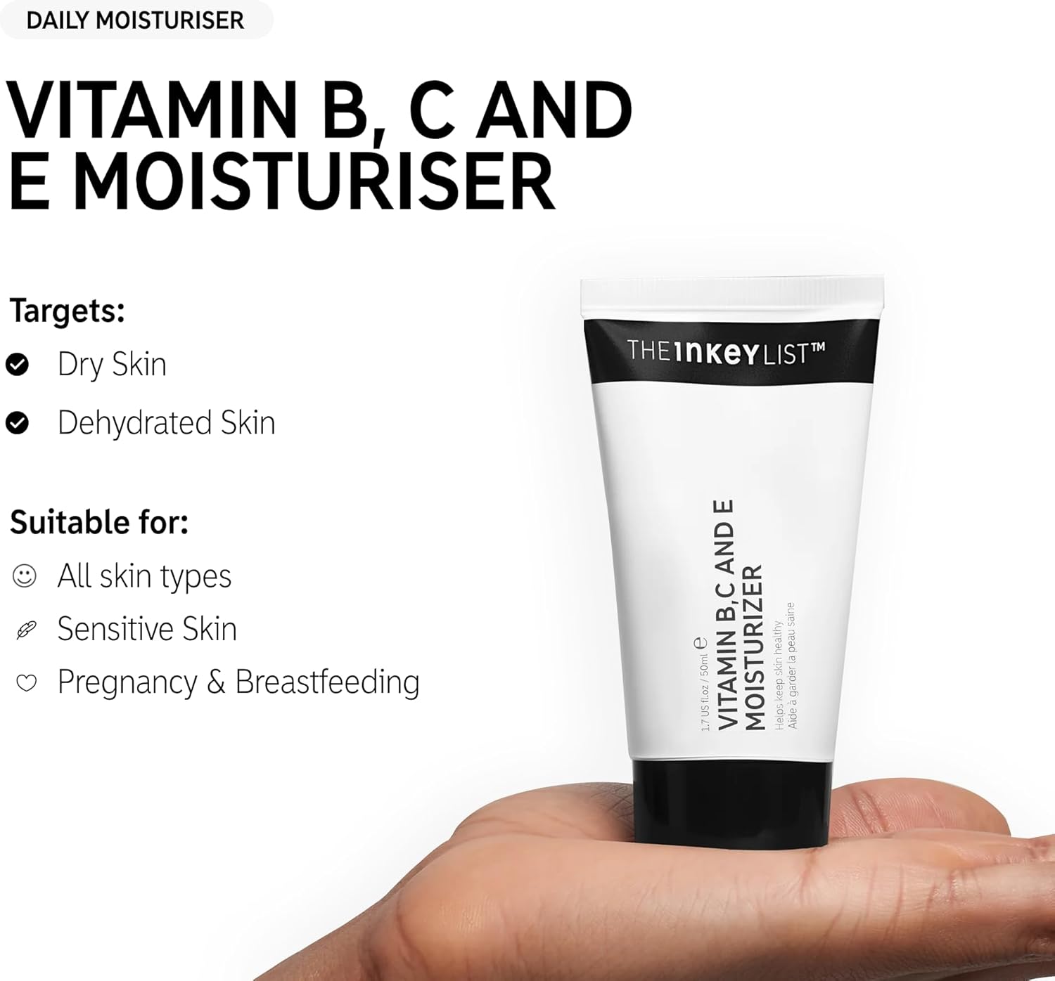 The INKEY List Vitamin B, C and E Lightweight Daily Face Moisturiser to Keep Skin Healthy 50ml