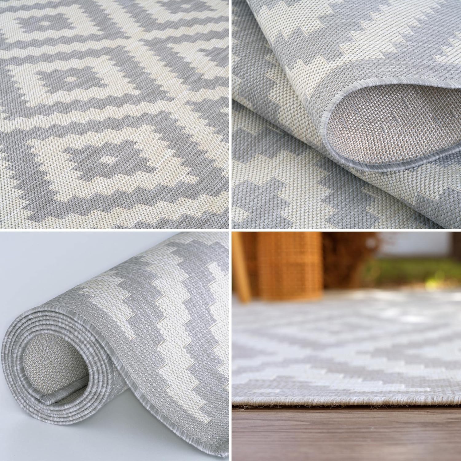 DURABLE RUGS – These outdoor/indoor rugs are made of resistant polypropylene, which are UV and water-resistant thus make the outdoor carpet adaptable to almost any environment. The rugs are machine-woven thus the fibers stay put. When properly cared, this rug will last for years.