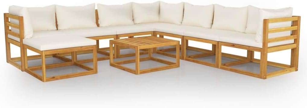 Tidyard 9 Piece Wooden Garden Sofas Set Pallet Furnitures Set Patio Corner Sofa with Backrest Wooden Lounge Sofa Set with Cushions Solid Wood Acacia Outdoor Furniture Type3