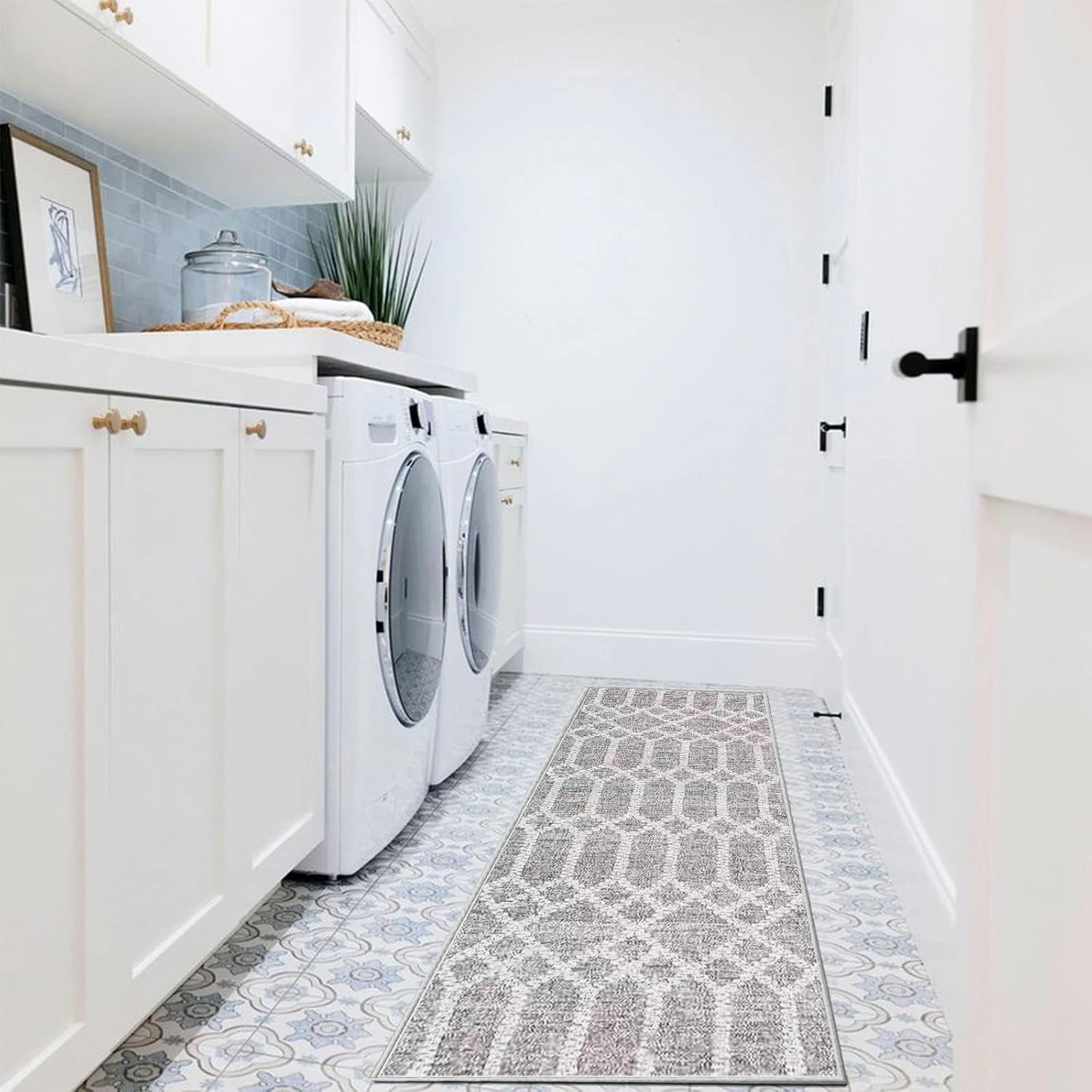 Tinyboy-hbq Carpet Runners for Hallways Non Slip Washable Runner Rugs Long Soft Kitchen runner Grey Hallway Hall Runners for Bedroom Hallways Living Room Kitchen (Boho Grey, 60 x 120 cm)