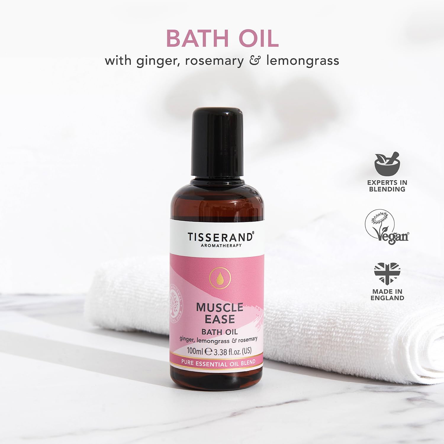 Tisserand Aromatherapy – Muscle Ease Bath Oil – Ginger, Lemongrass, Rosemary – 100% Pure Essential Oil Blend – 100ml