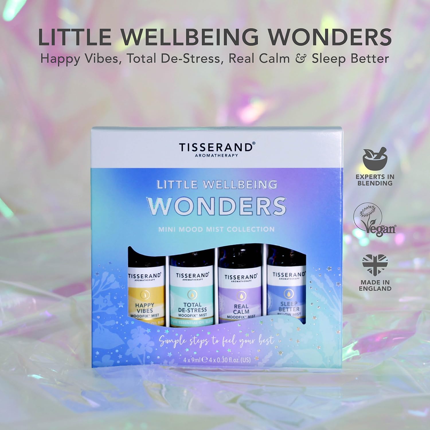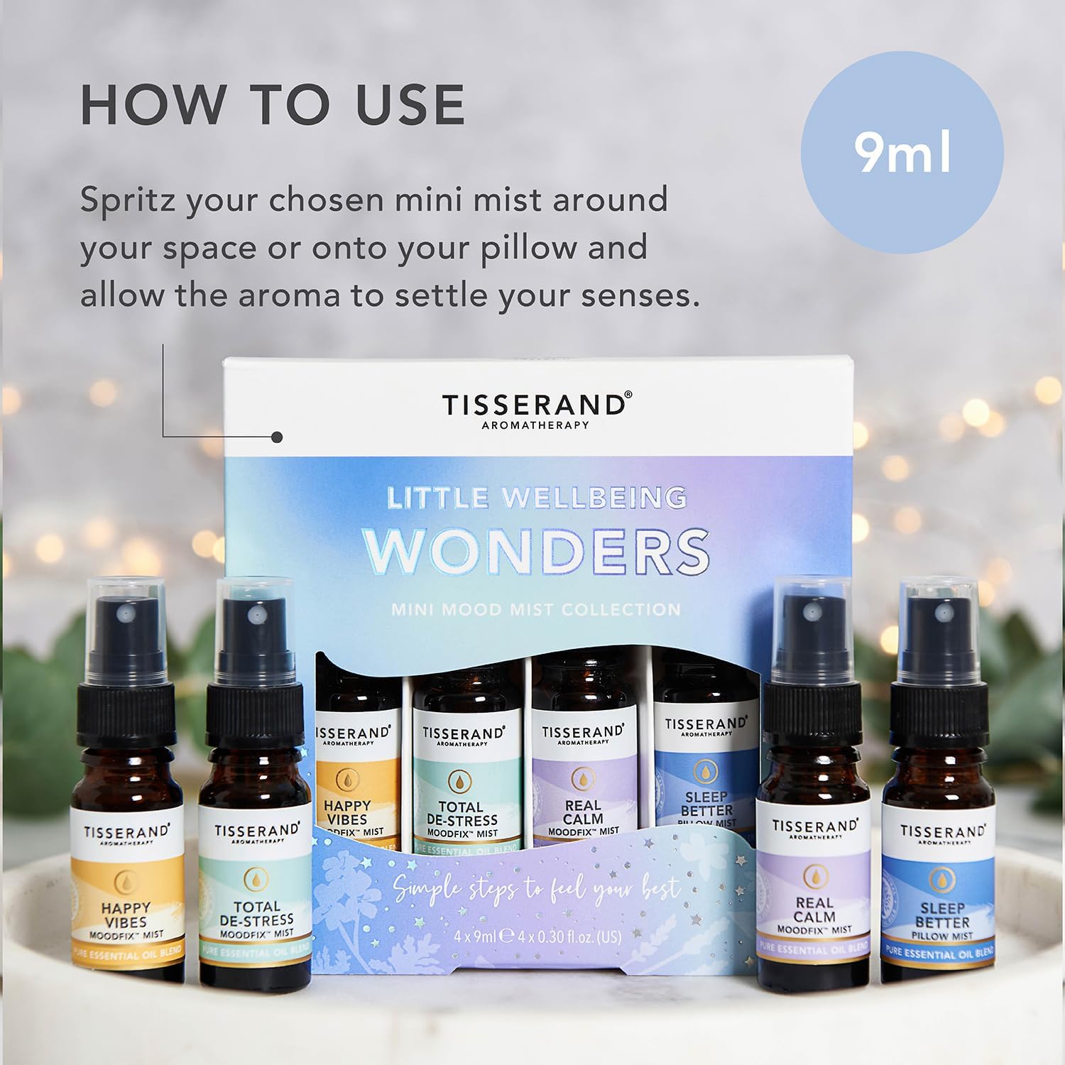 Tisserand Aromatherapy – Wellbeing – Little Wellbeing Wonders Collection – MoodFix Mist – 100% Pure Essential Oil – Miniature Mist Giftset – 4x9ml