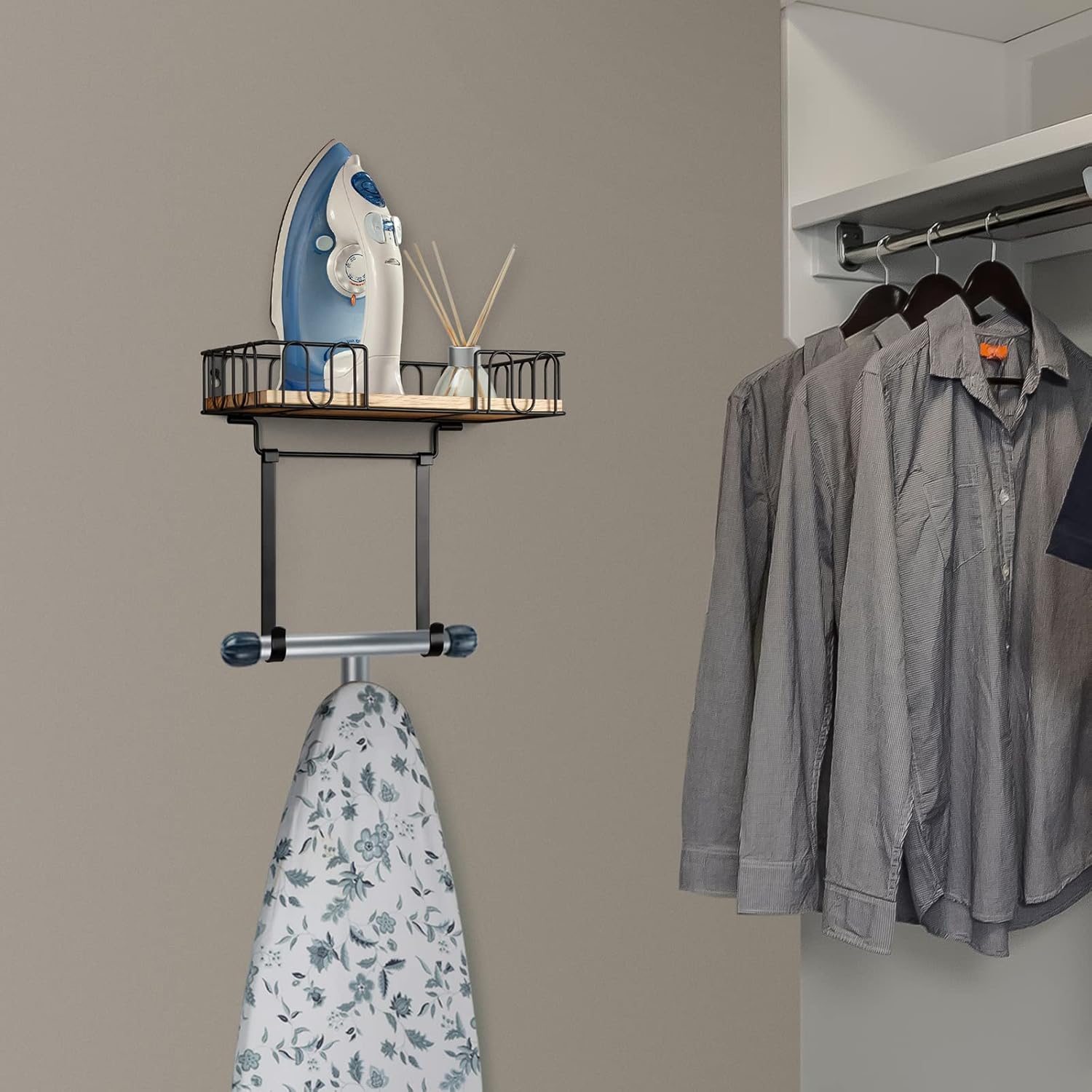 STURDY AND STYLISH: TJ.MOREE ironing board hanger includes a natural wooden element in its functional basket. While ensuring stored items are secure, it creates a rustic yet modern style.