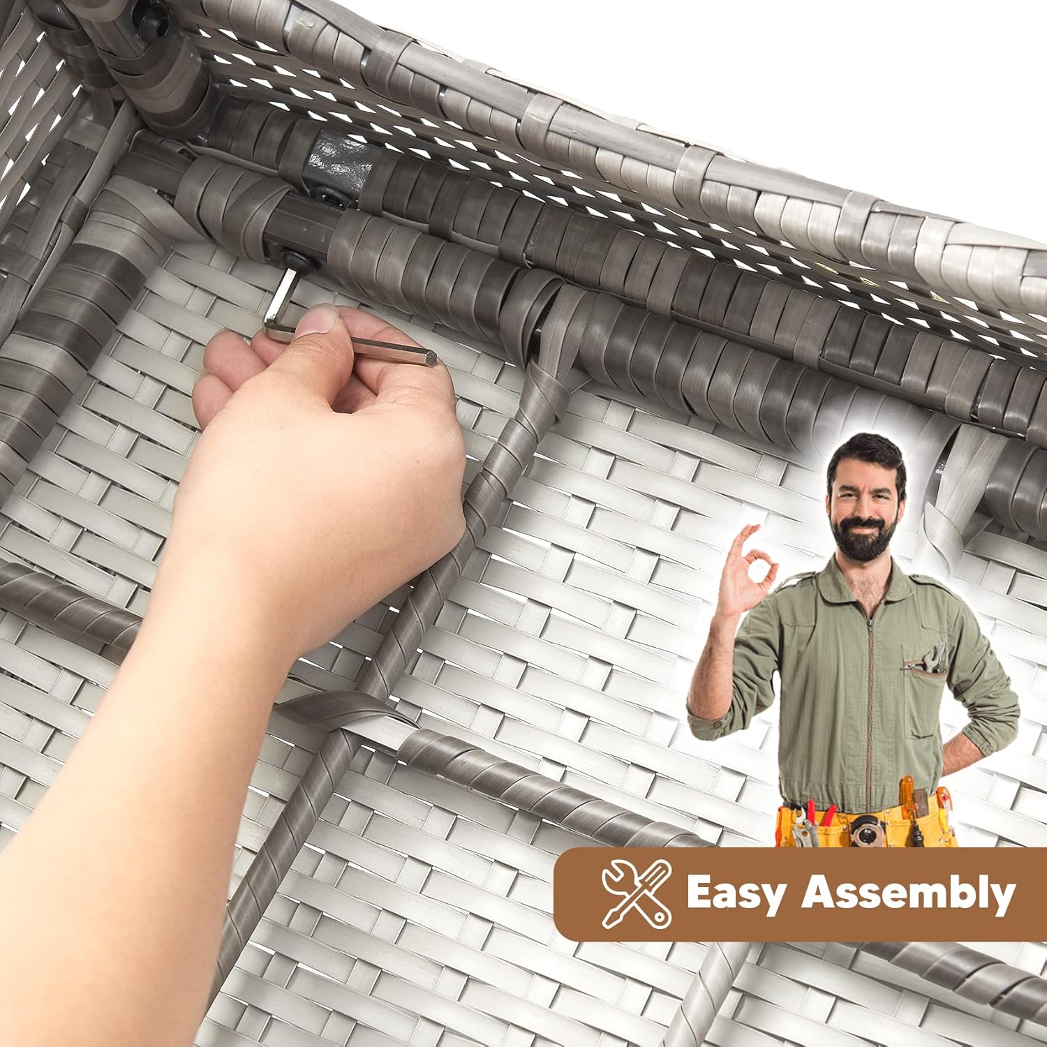 Easy to Assemble: Simple and Quick assemble with one-size screws, no worry to split, crack, fade, rot and deteriorate. The whole rattan garden set are packed in only one carton in reasonable and safe packing method. 24/7 customer service is available for any question.