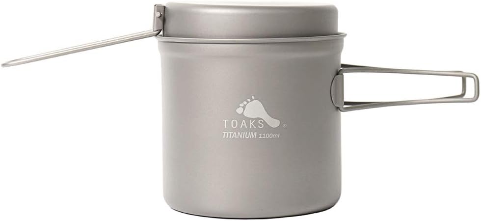 Toaks titanium outdoor camping pan, hiking cookware, backpacking cooking picnic bowl, pot pan set, 1100ml