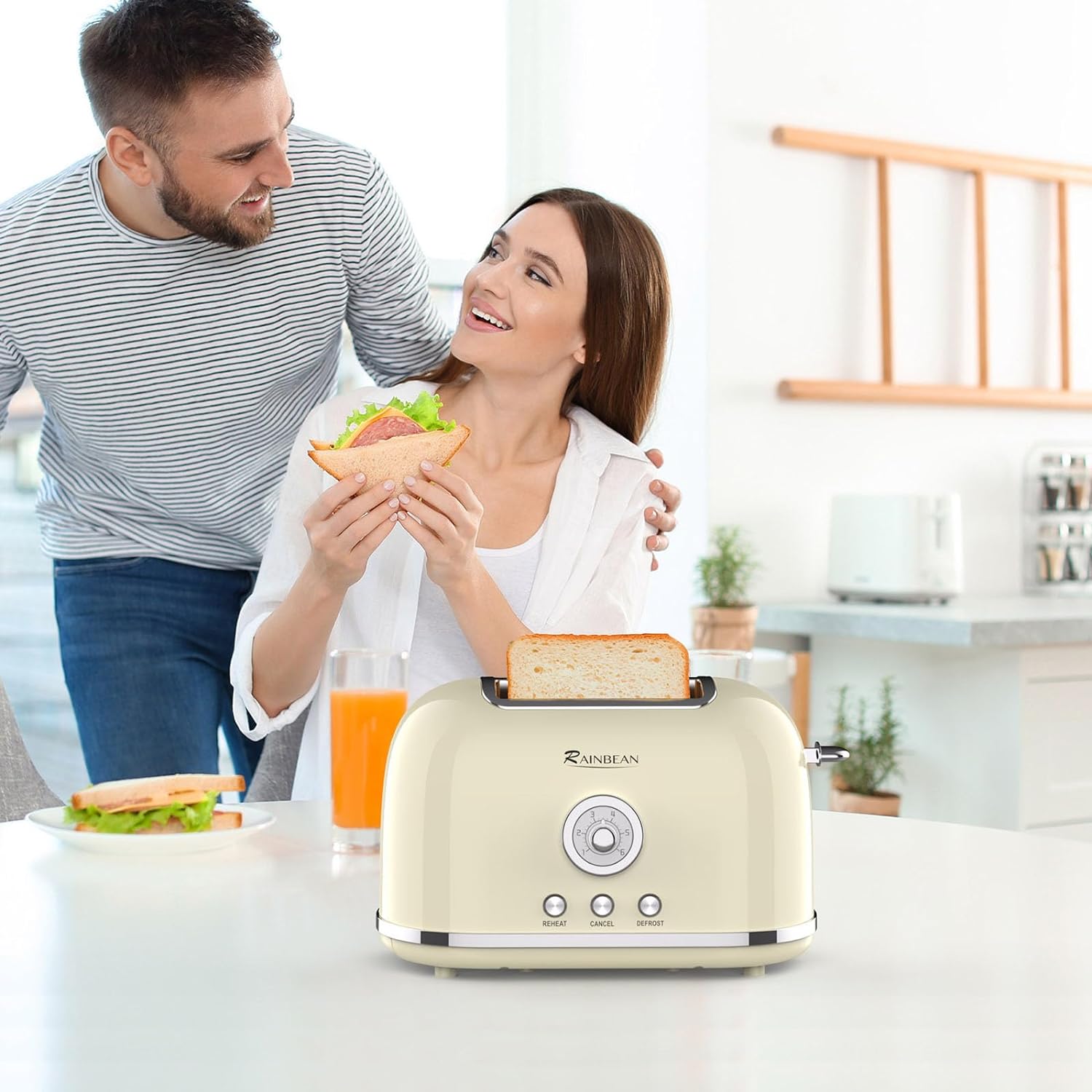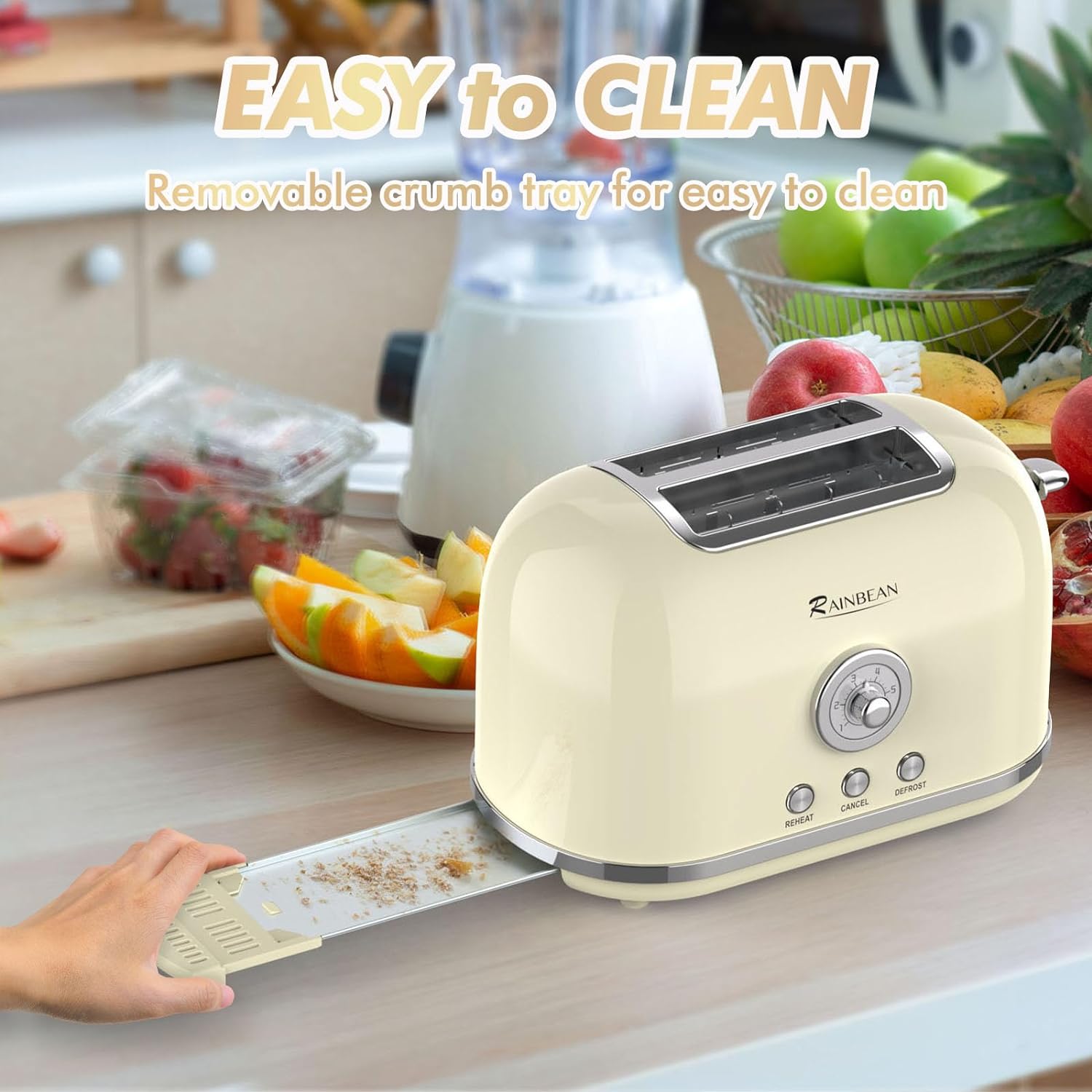 Toaster 2 Slice Retro Toaster Stainless Steel with 6 Bread Shade Settings and Reheat Cancel Defrost Function, Cute Bread Toaster with Extra Wide Slot and Removable Crumb Tray (Cream)