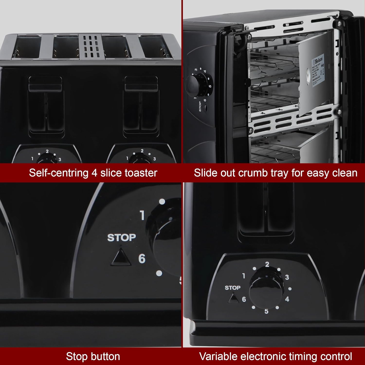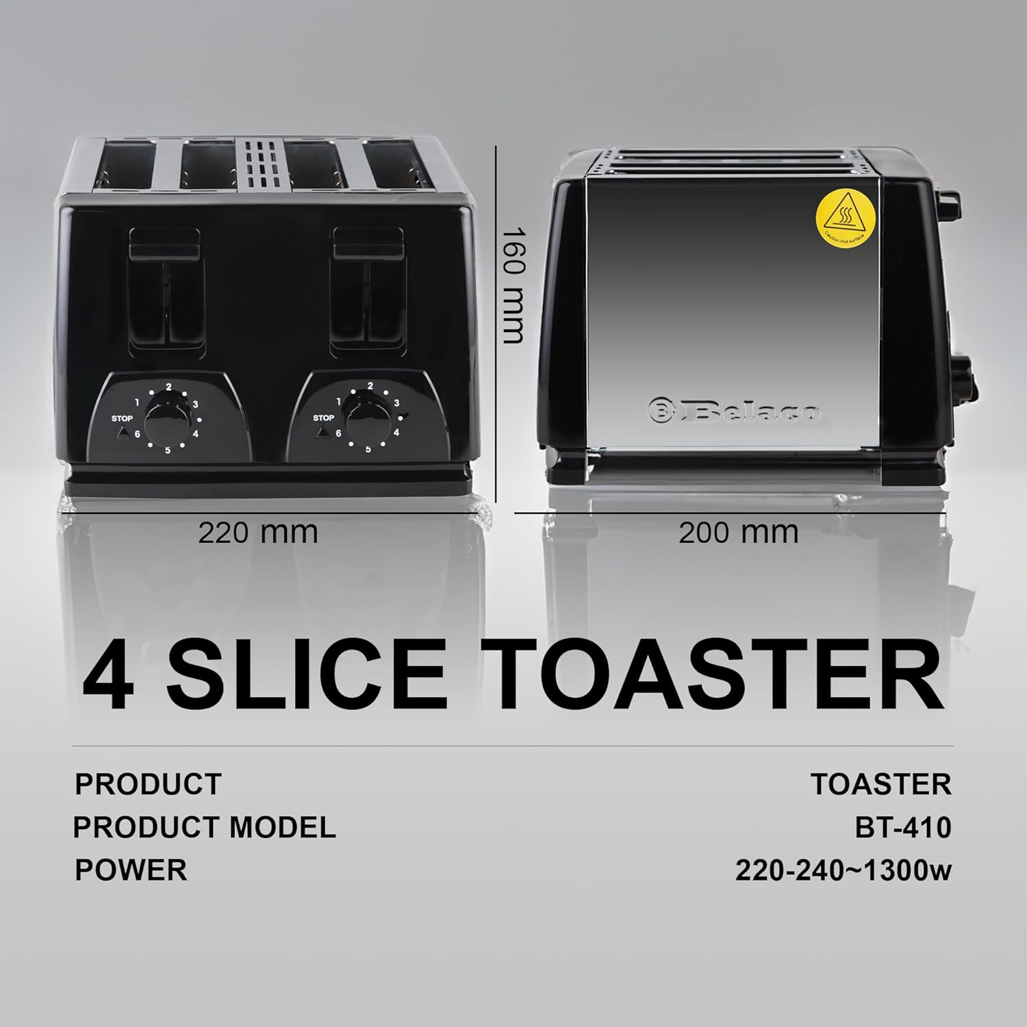 Toaster 4 Slice toaster BT410 steeliness steel housing black toaster 1300W auto pup up function, Variable Electronic Timing Control, Black