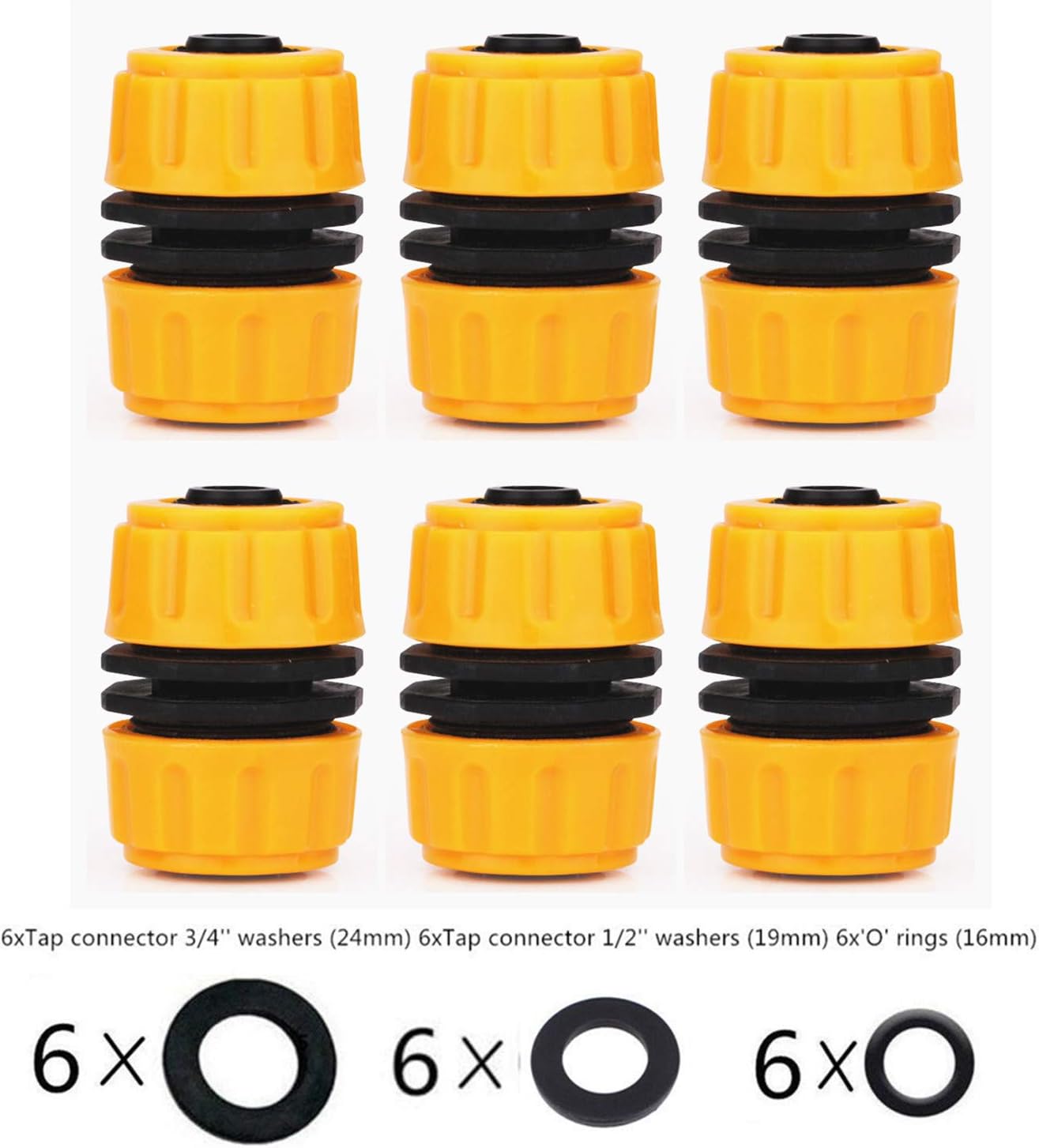 TOPWAYS 6 pack Hose Repair Connector, Quick Fix Extend Connector for 1/2″ Graden Hose Pipe (Yellow)