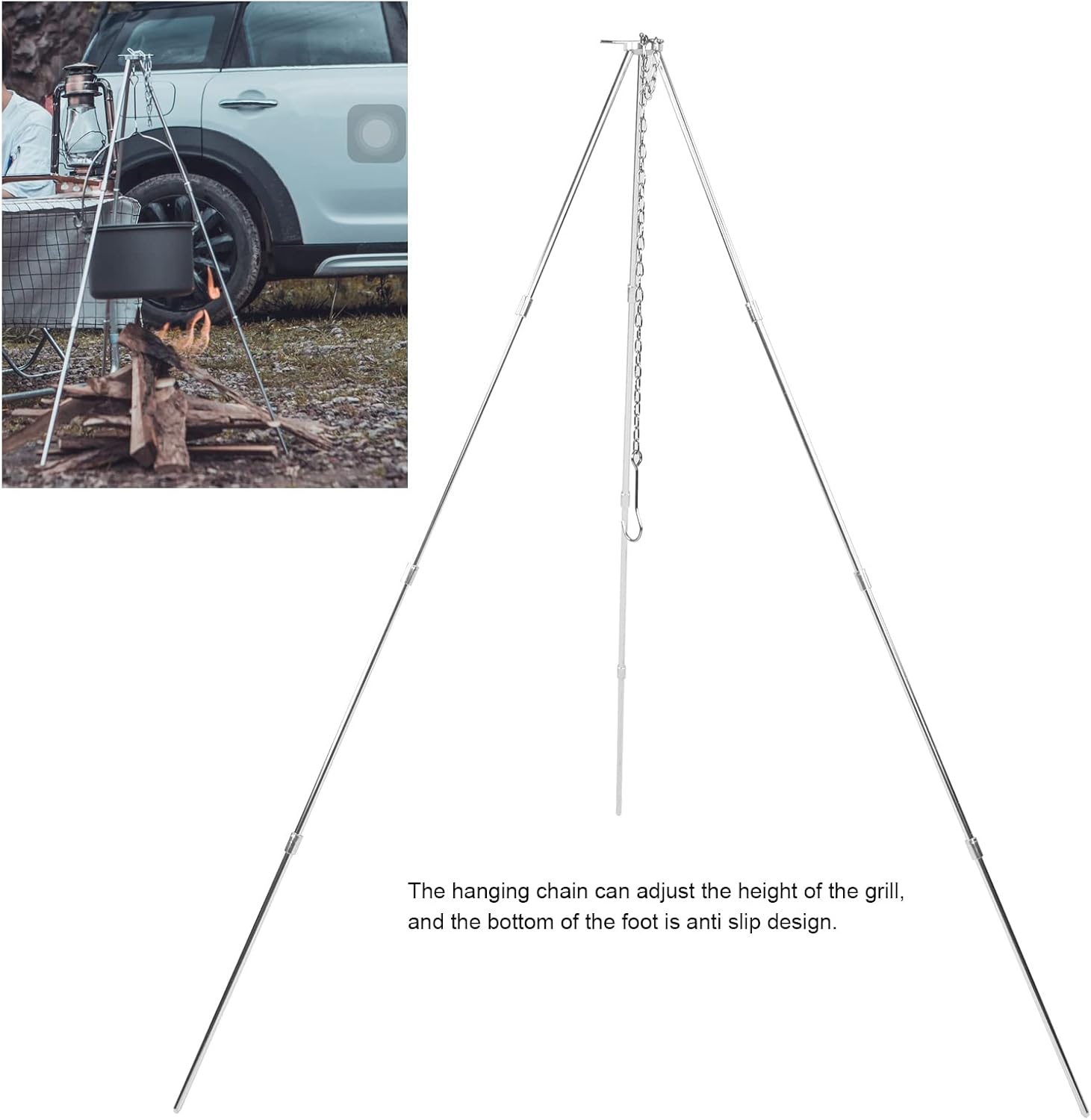 Hang Your Cookware with Ease: Tired of struggling to find a suitable surface for cooking over a fire? Our hanging pot camping tripod solves that problem. With its sturdy hooks, you can effortlessly hang your pots, pans, kettles, or Dutch ovens securely above the flames. Experience the joy of hands-free cooking and elevate your outdoor cooking game.