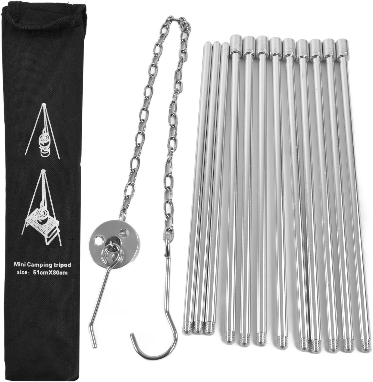 Topyond 4 Section Campfire Tripod, Portable Aluminum Alloy Hanging Pot Camping Tripod for Outdoor Cooking, Open Fire Cookware Tool