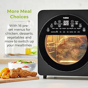 This digital air fryer oven from Tower is the perfect cooking companion, featuring 5-in-1 functionality that can air fryer, rotisserie, dehydrator, as well as for baking and roasting.