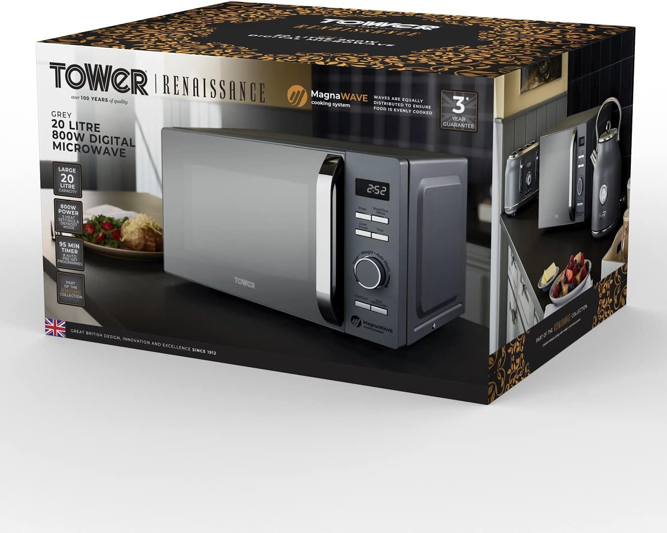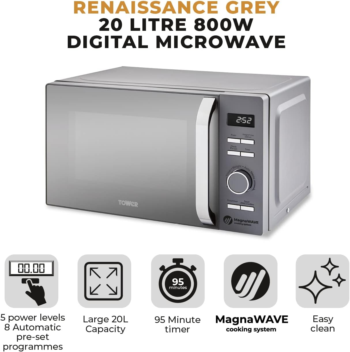 Tower T24039GRY Renaissance 20L Microwave with 5 Power Settings and MagnaWave technology, Grey