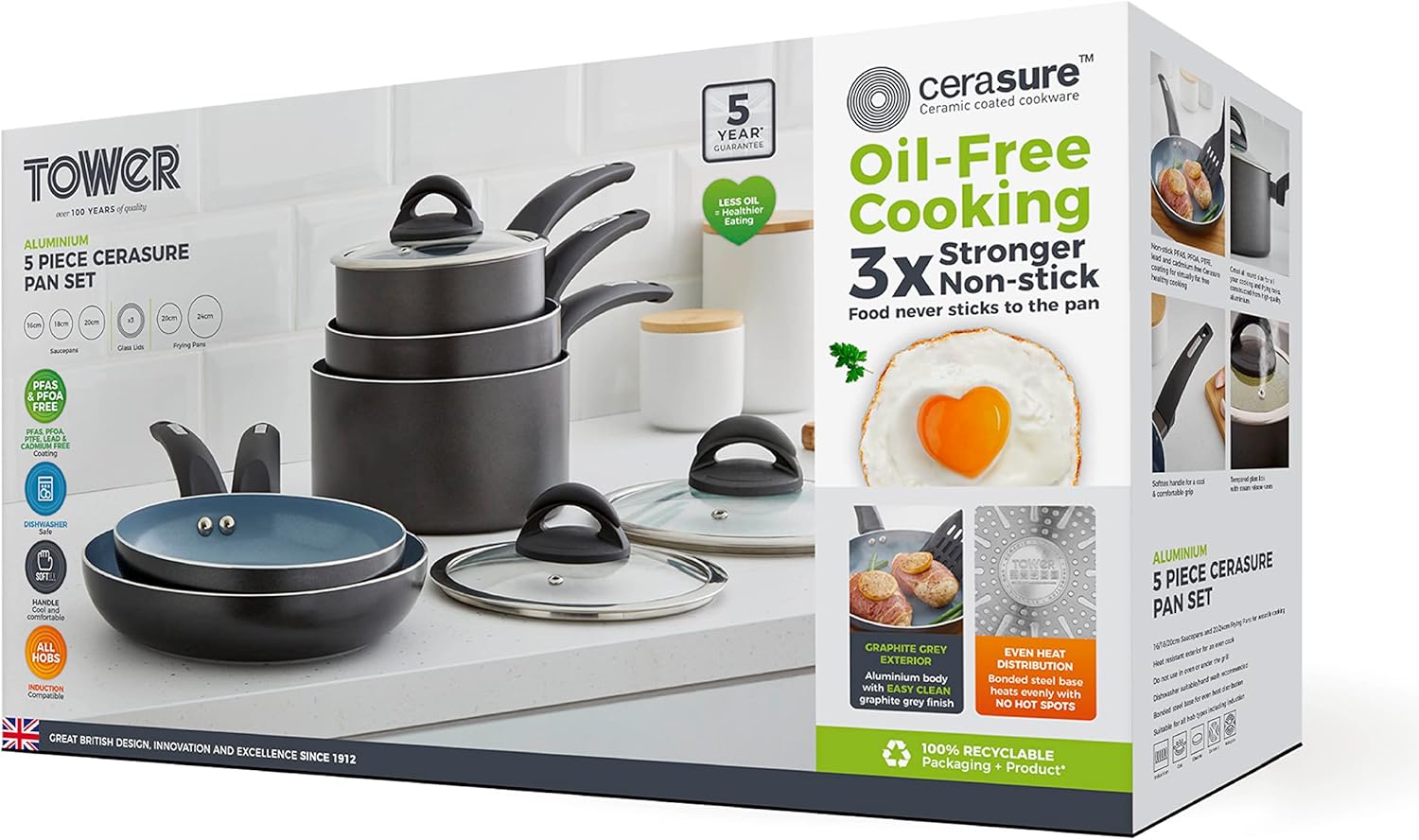 Tower T80303 Cerasure 5 Piece Pan Set with Non-Stick Coating, Suitable