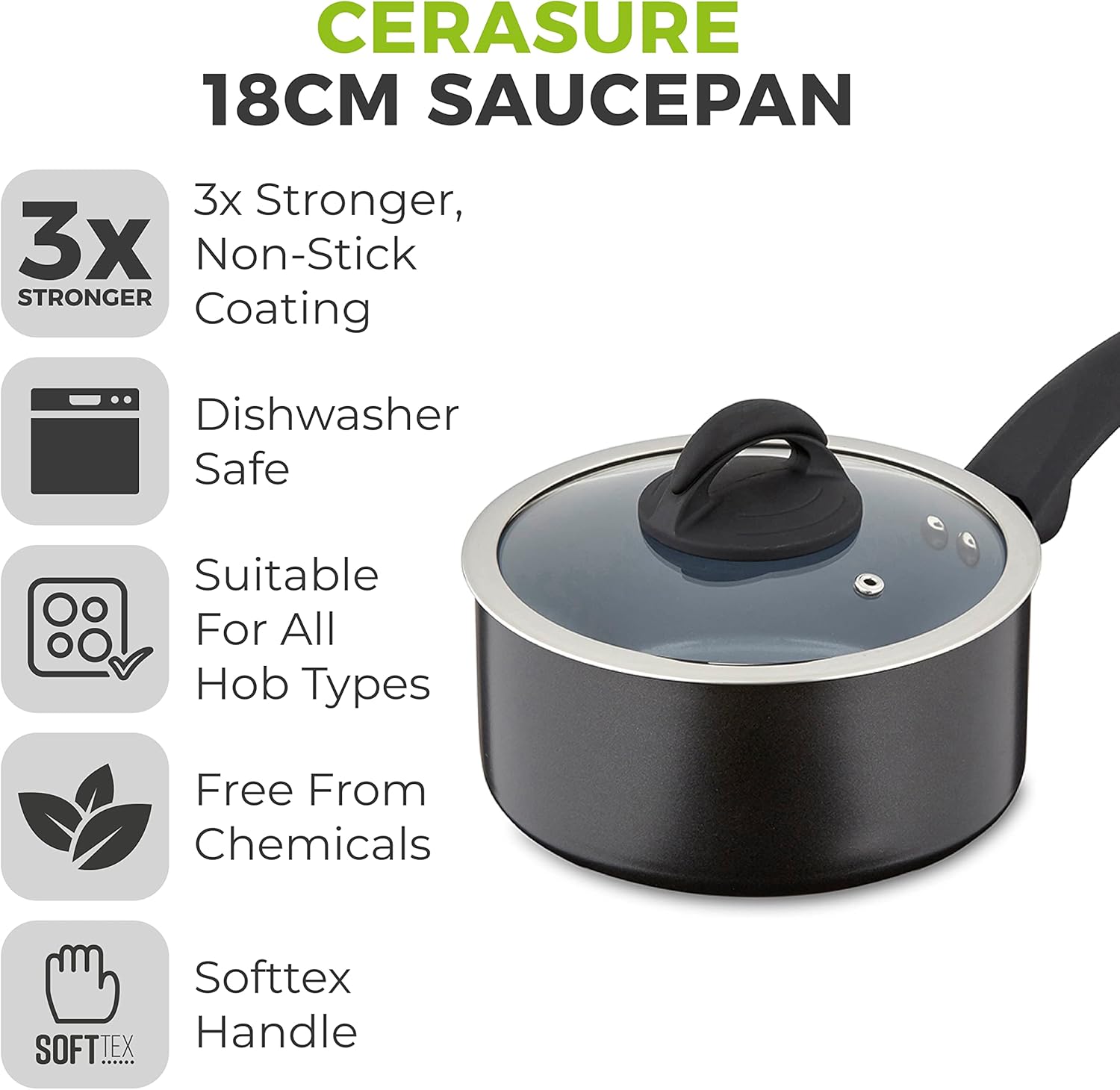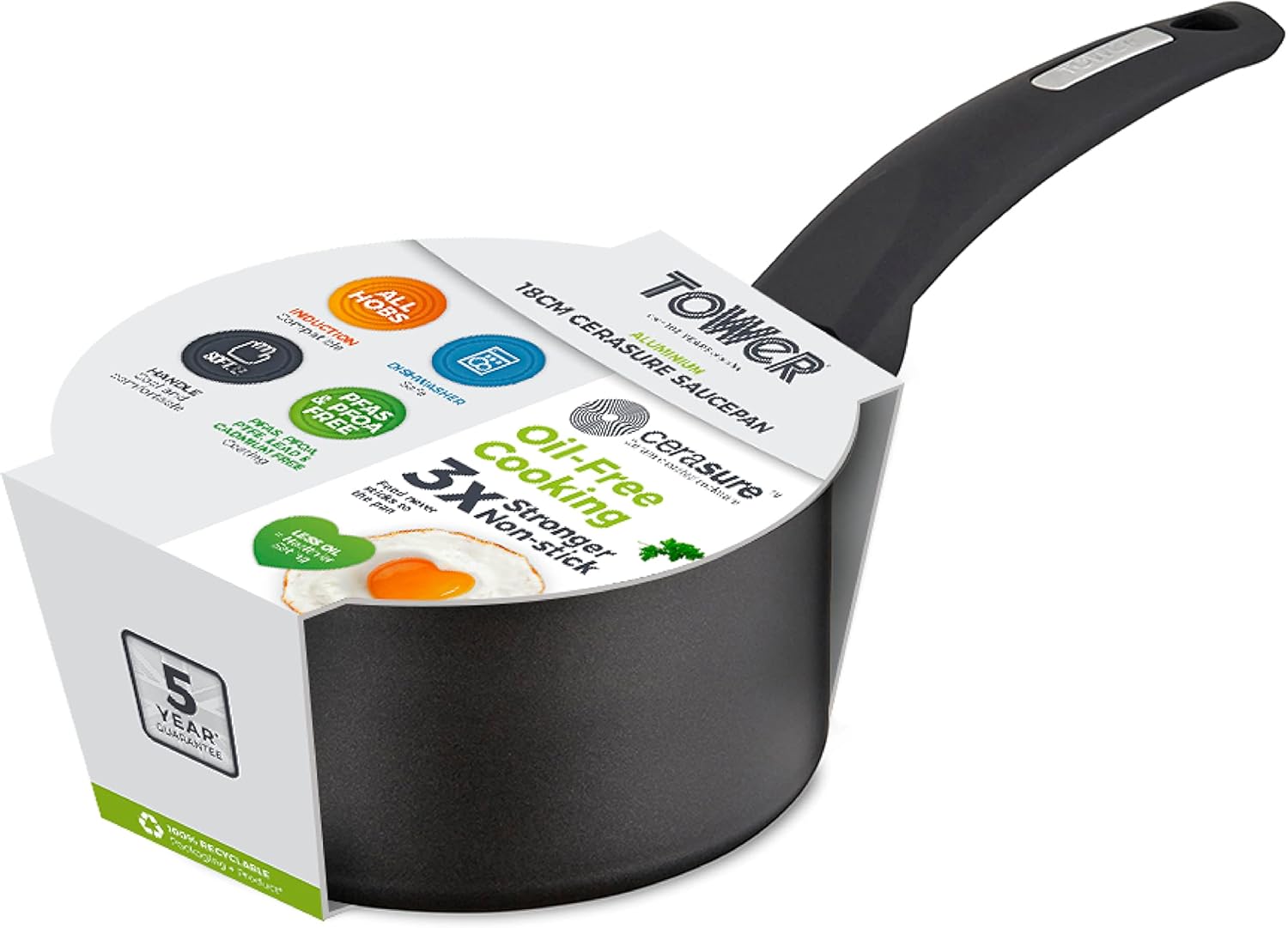Tower T80357 Cerasure 18cm Saucepan with Non-Stick Coating, Suitable